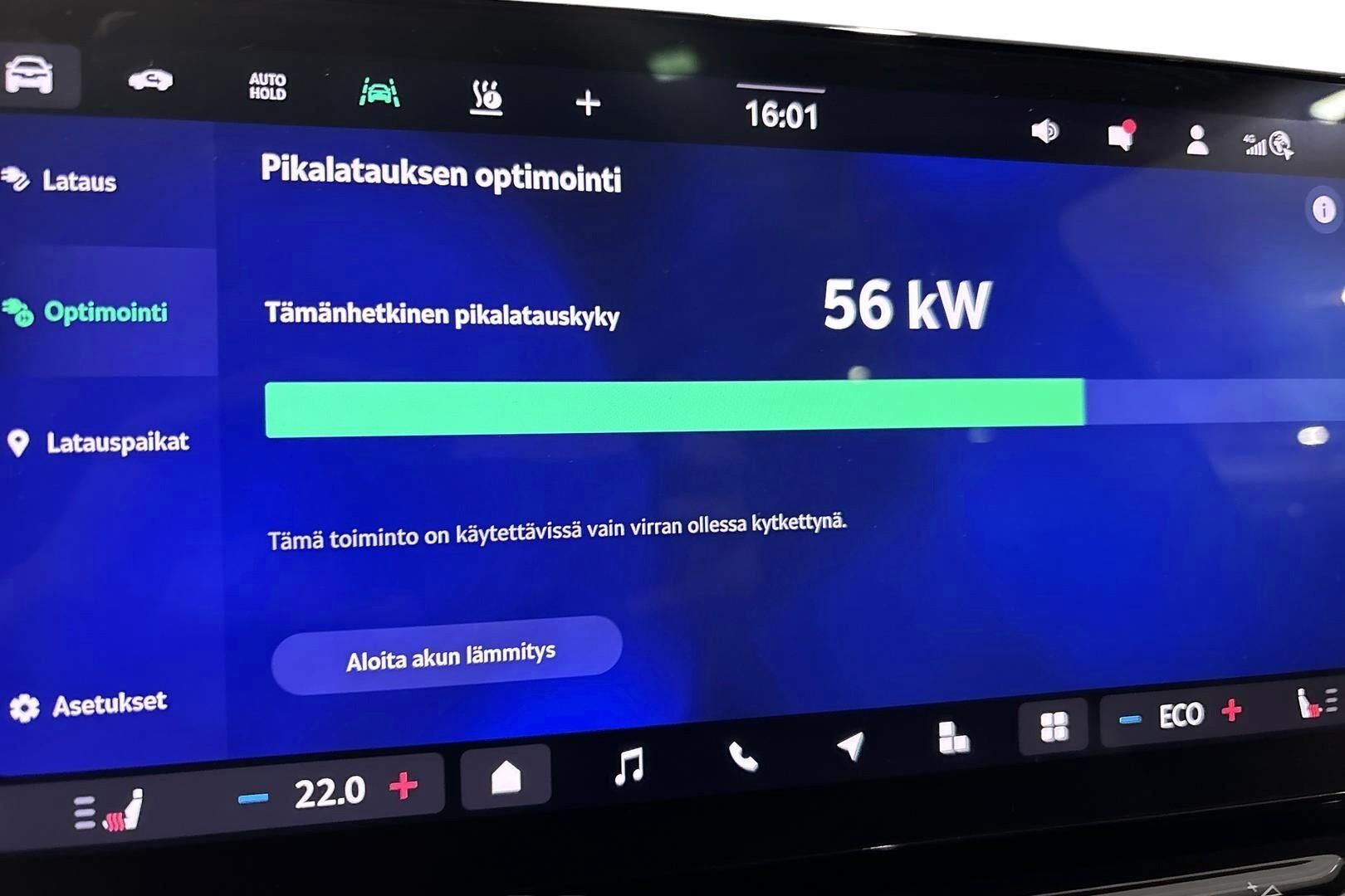 Ajoneuvon latausteho (kW)