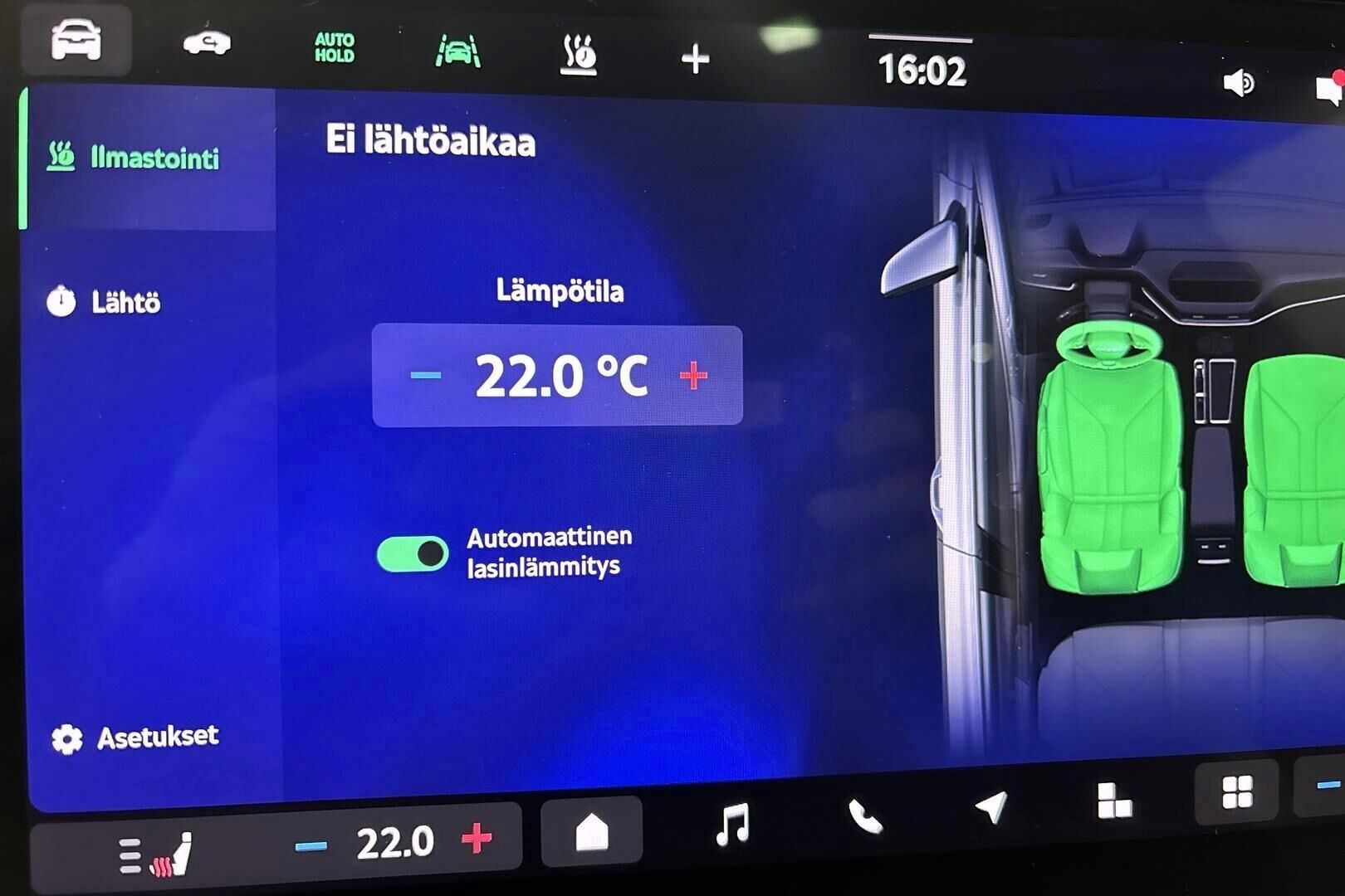 Tämä auto on täyssähköauto (BEV). Ilmoituksen kulutustiedot, latausajat sekä sähköinen toimintamatka ovat valmistajan ilmoittamia. Todellinen kulutus, latausaika ja toimintamatka saattavat poiketa ilmoitetusta johtuen auton iästä, ulkoisista tekijöistä kuten säätilasta ja käytettävästä latauslaitteesta sekä käyttäjän ajotavasta.