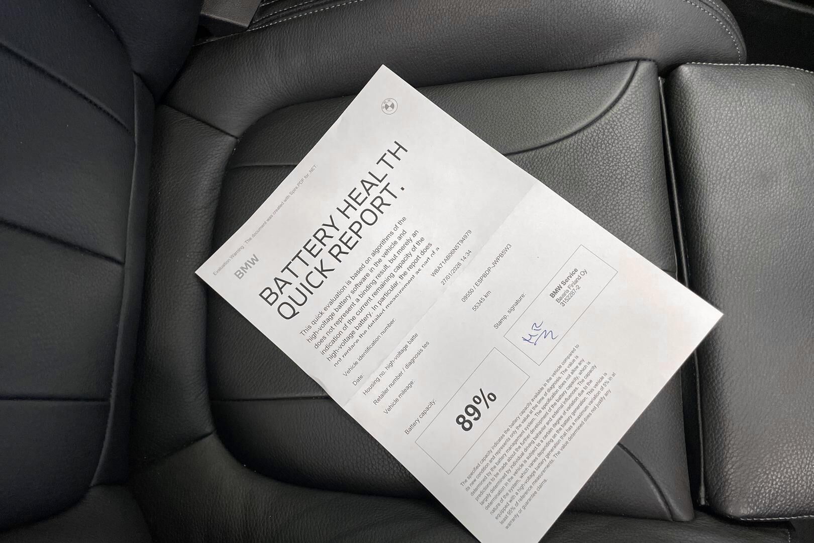 BMW Battery Health Report 89% - lisätietoja akkutestistä saat myyjältä