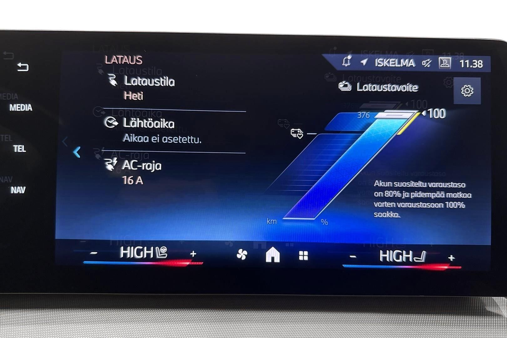 Lue lisää sähköauton lataamisestaTodellinen kulutus, latausaika ja toimintamatka saattavat poiketa ilmoitetusta johtuen auton iästä, ulkoisista tekijöistä kuten säätilasta ja käytettävästä latauslaitteesta sekä käyttäjän ajotavasta.