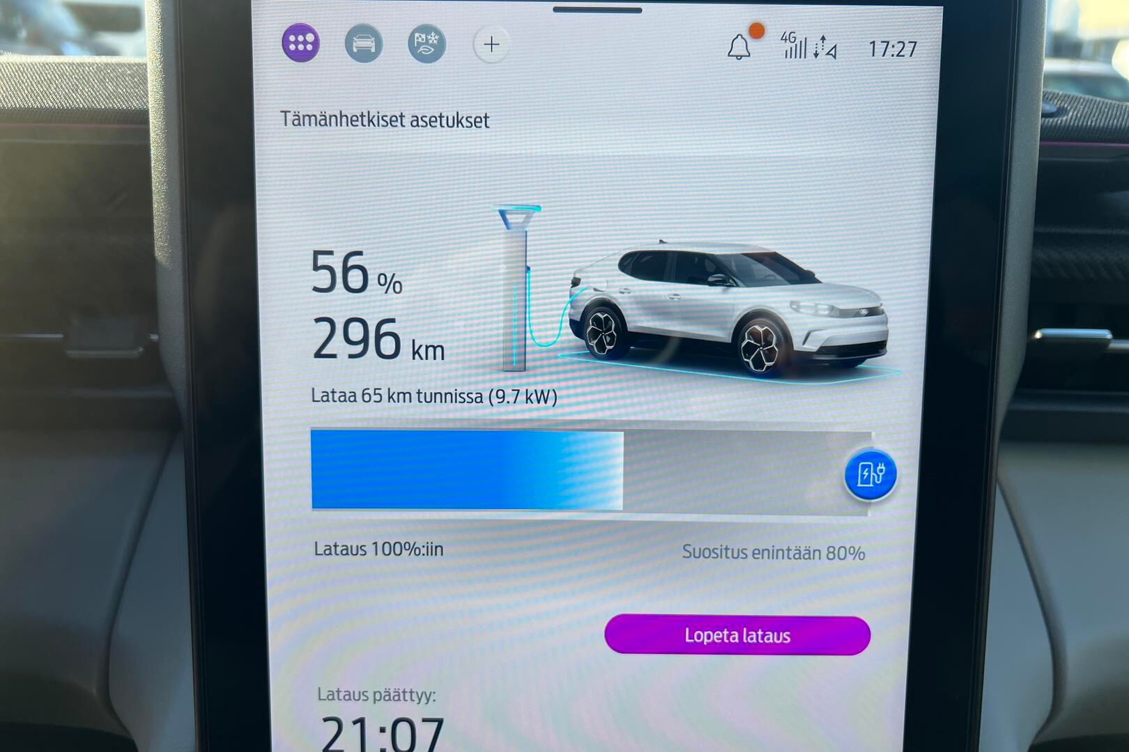 Lue lisää sähköauton lataamisestaTodellinen kulutus, latausaika ja toimintamatka saattavat poiketa ilmoitetusta johtuen auton iästä, ulkoisista tekijöistä kuten säätilasta ja käytettävästä latauslaitteesta sekä käyttäjän ajotavasta.