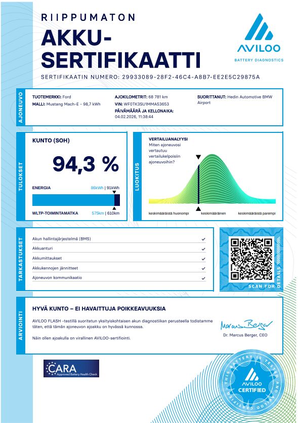 Lue lisää lataustyypeistäTämä auto on täyssähköauto (BEV). Ilmoituksen kulutustiedot, latausajat sekä sähköinen toimintamatka ovat valmistajan ilmoittamia. Todellinen kulutus, latausaika ja toimintamatka saattavat poiketa ilmoitetusta johtuen auton iästä, ulkoisista tekijöistä kuten säätilasta ja käytettävästä latauslaitteesta sekä käyttäjän ajotavasta.