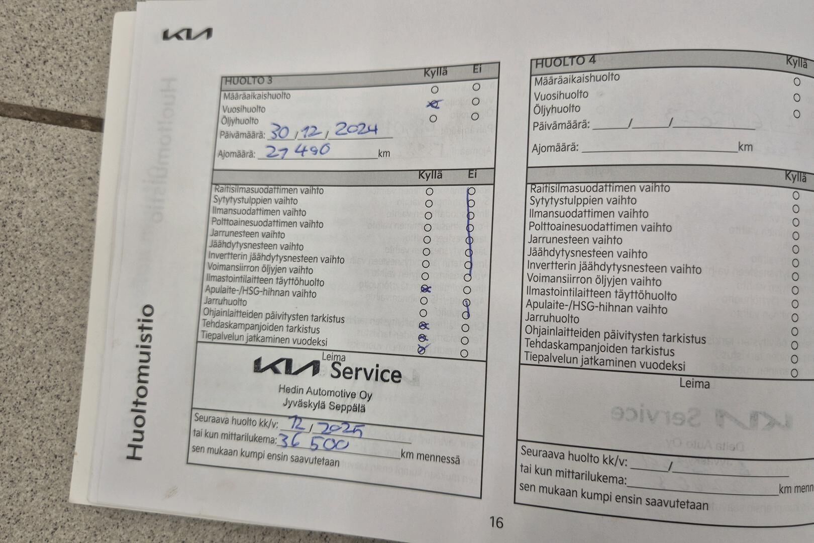 Täydellinen merkkiliikkeen huoltokirja