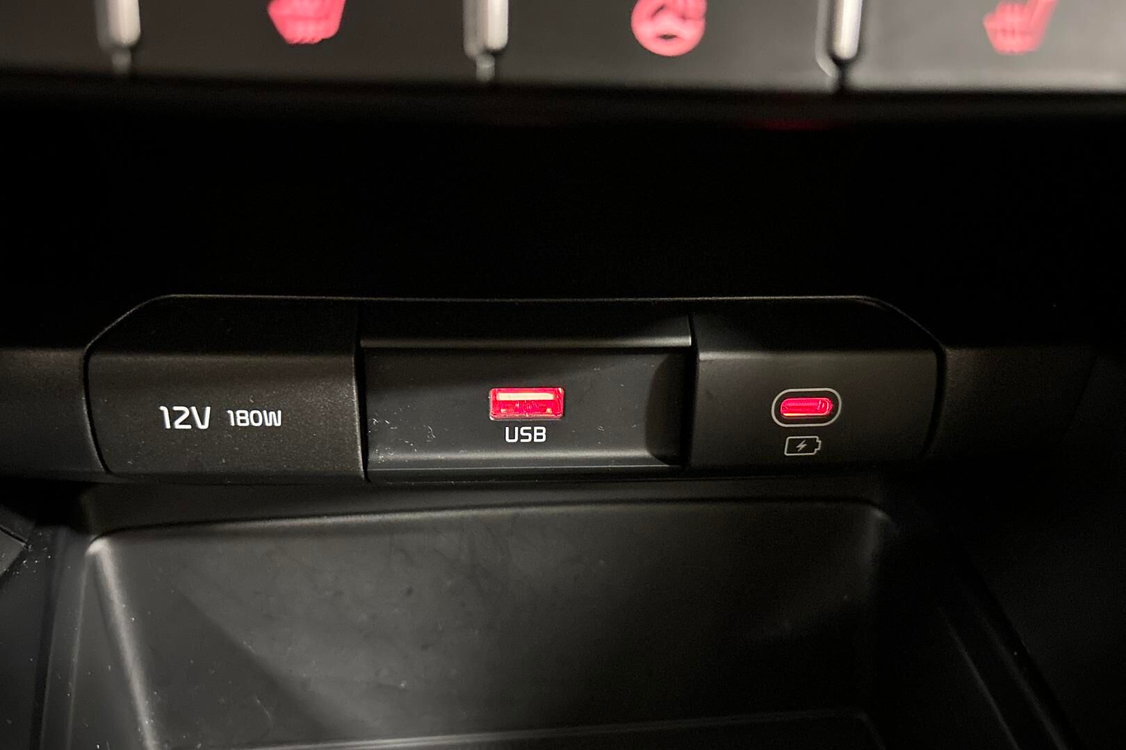 USB-latausliitin keskikonsolissa