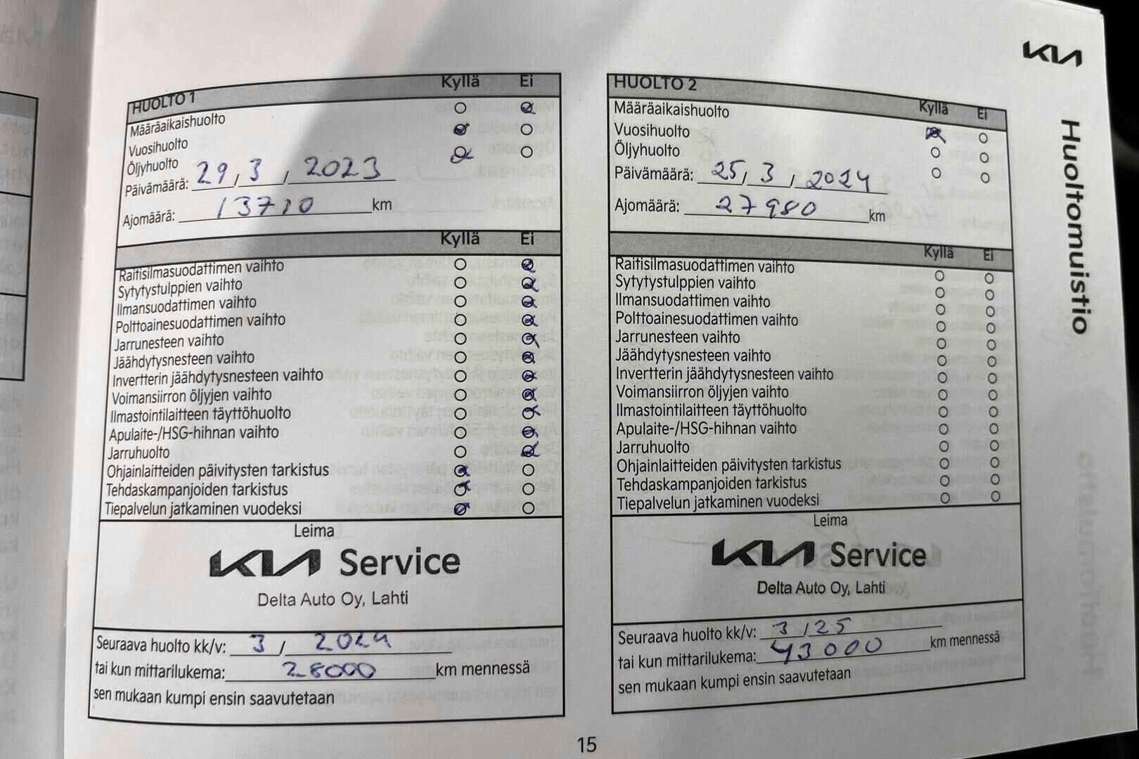 Täydellinen merkkiliikkeen huoltokirja