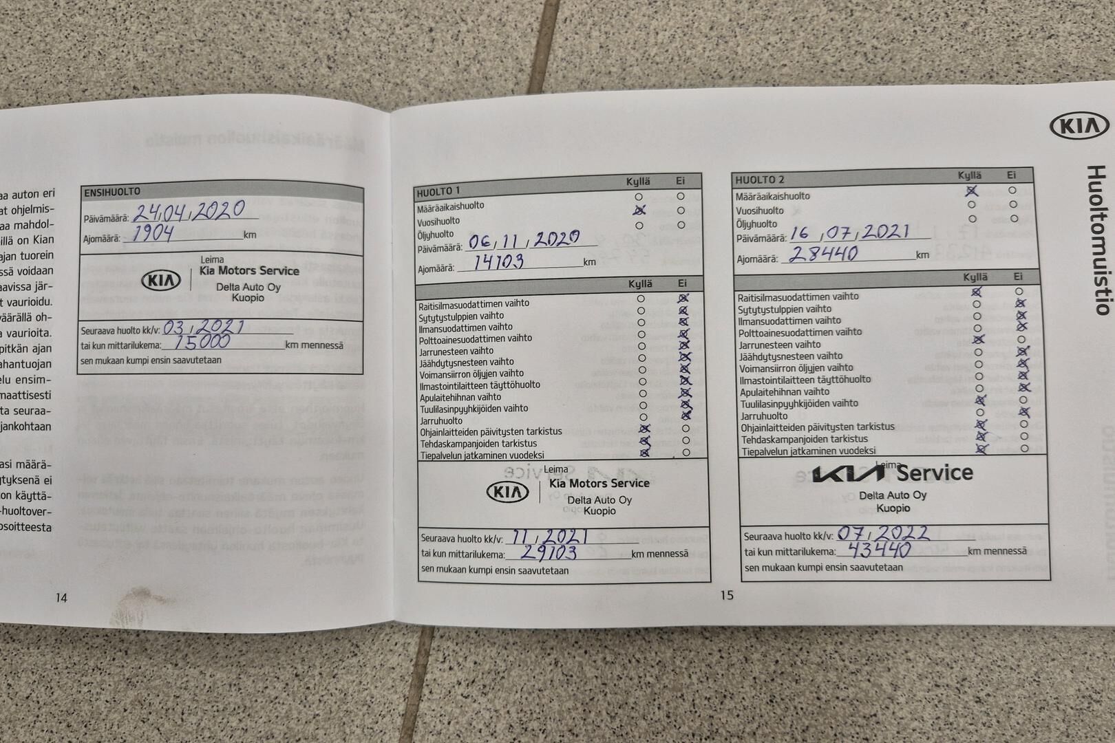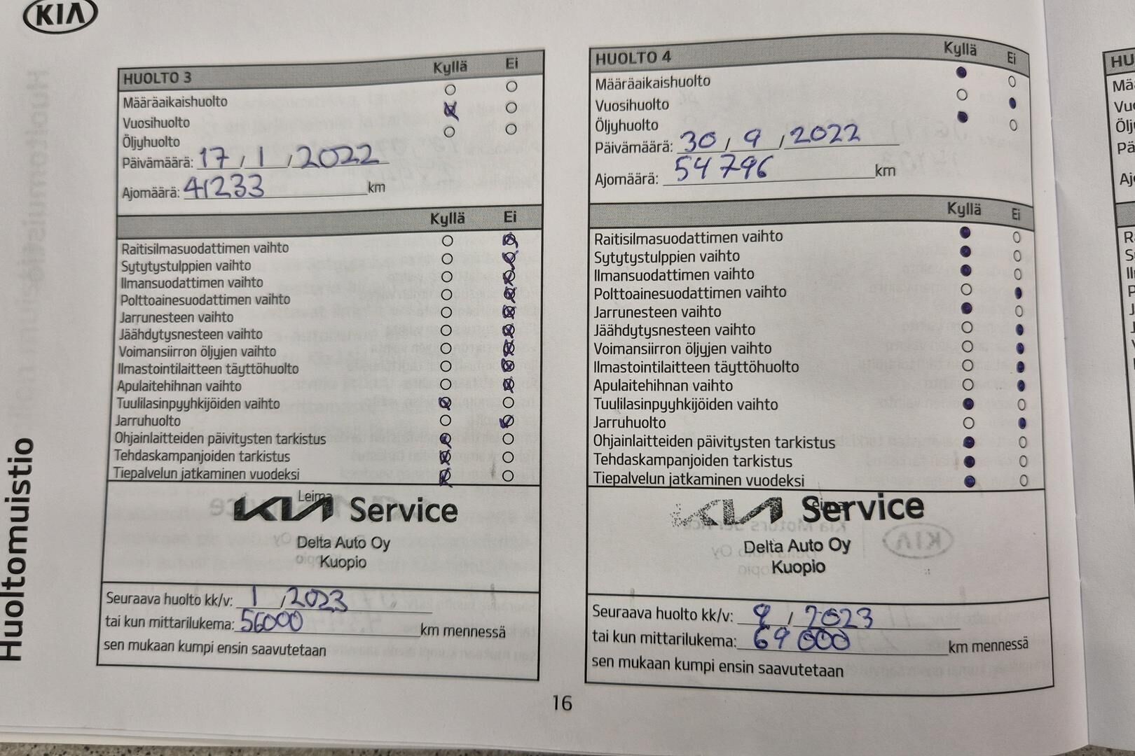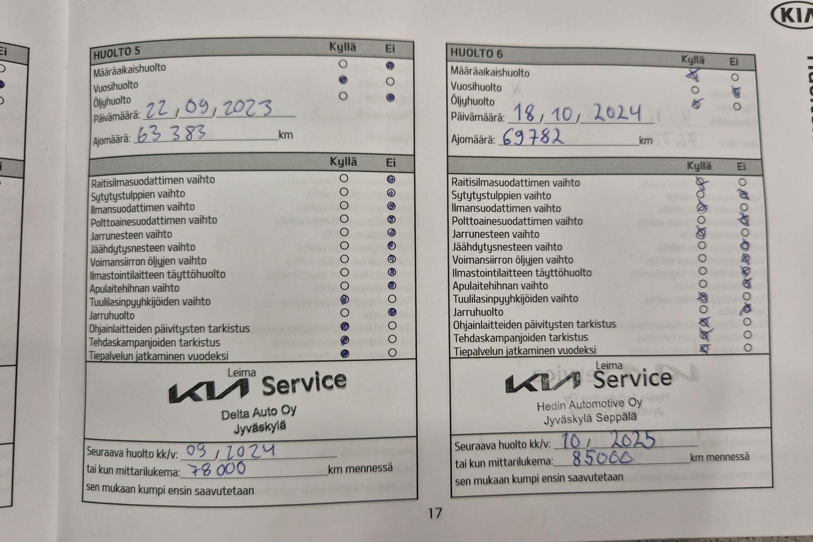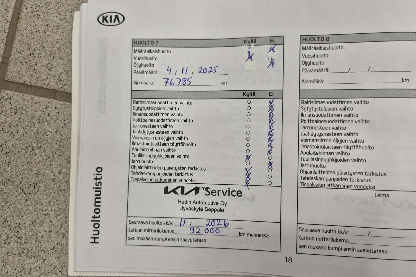 Viimeisin huolto tehty 76785 tkm / 11/2025
