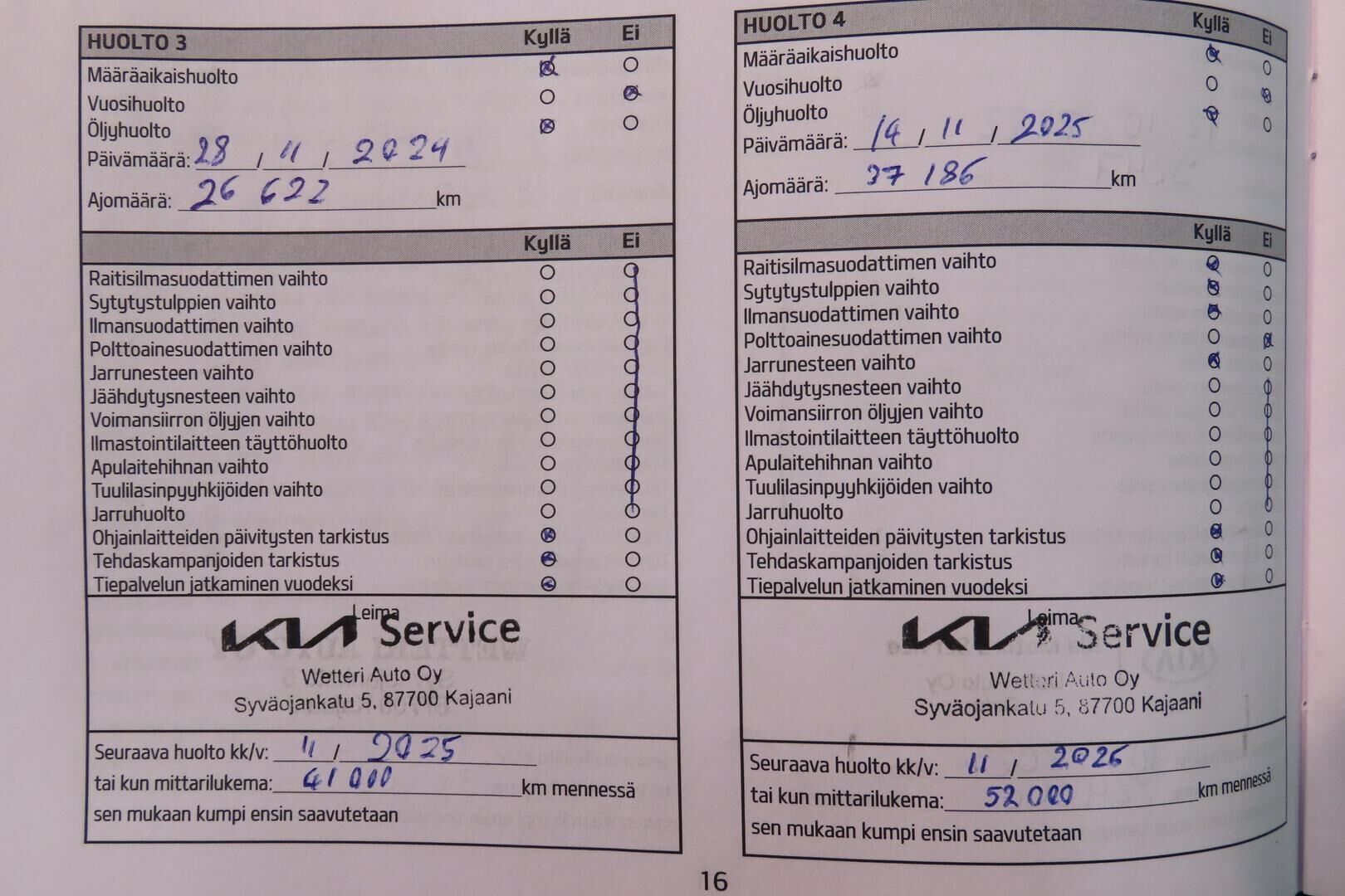 Viimeisin huolto tehty 11/2025