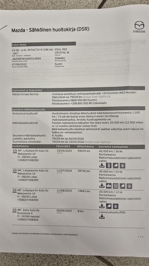 Viimeisin huolto tehty 05/2025
