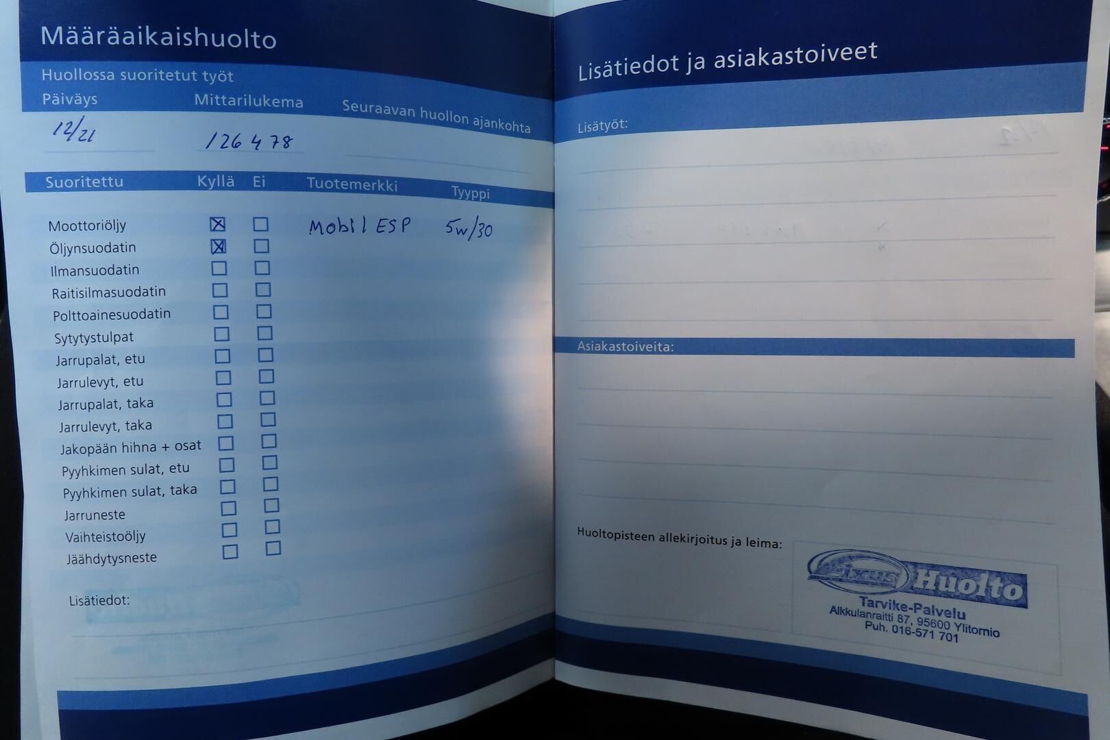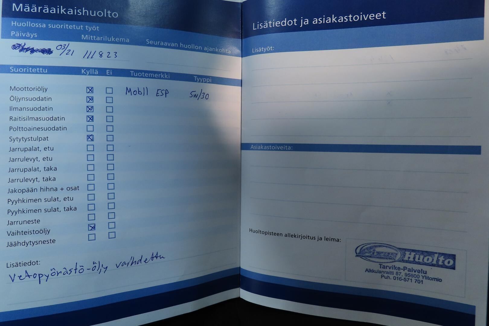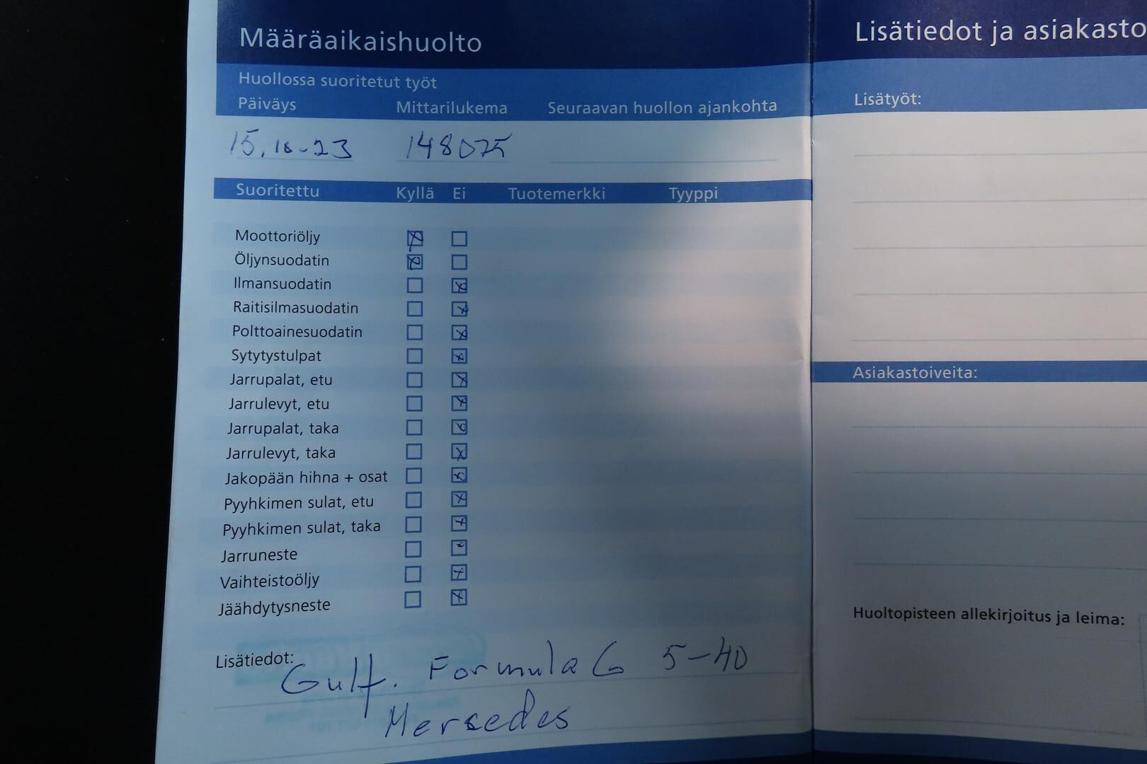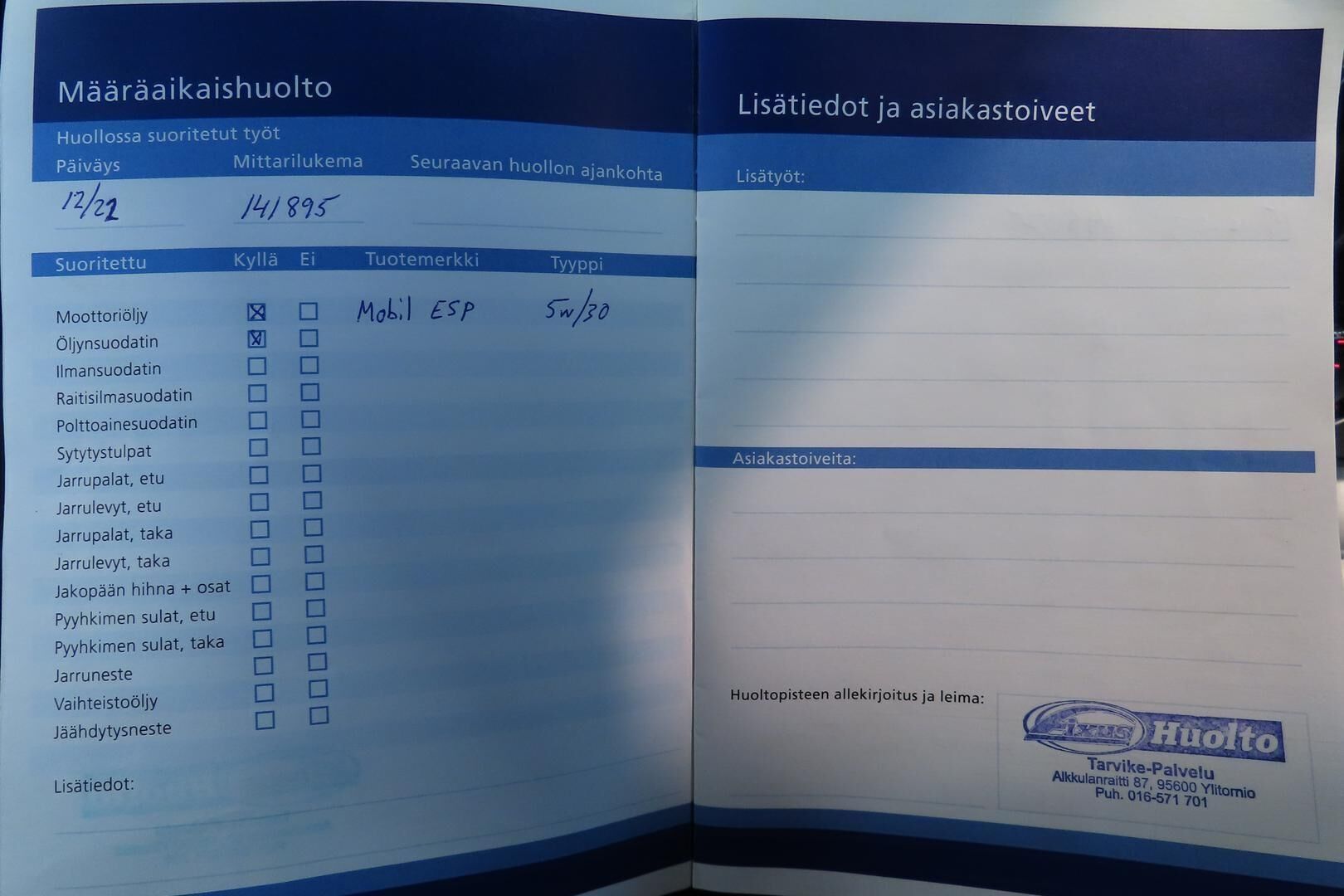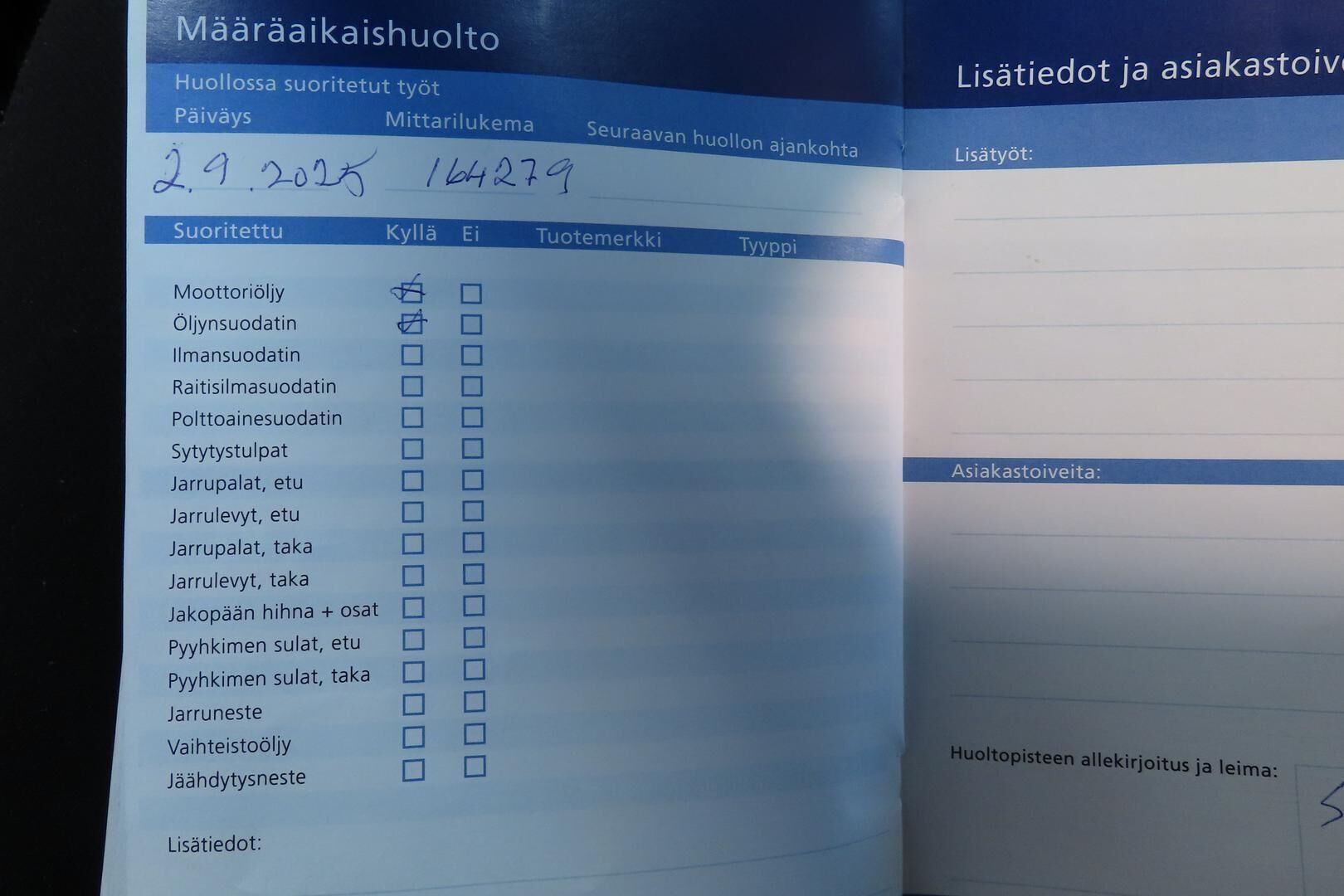 Viimeisin huolto 9/2025 , 164tkm kohdalla