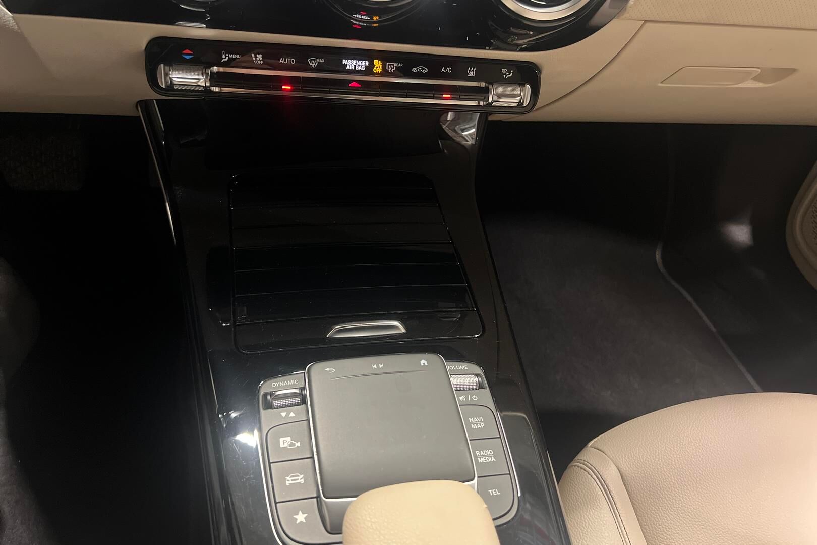 Säilytystila keskikonsolissa, rulokannella