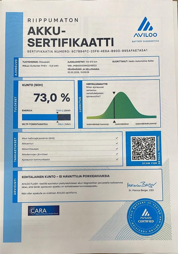 Tämä auto on lataushybridi (PHEV). Ilmoituksen päästö- ja kulutustiedot sekä sähköinen toimintamatka ovat valmistajan ilmoittamia. Todellinen kulutus ja toimintamatka saattavat poiketa ilmoitetusta johtuen auton iästä, ulkoisista tekijöistä ja käyttäjän ajotavasta.
