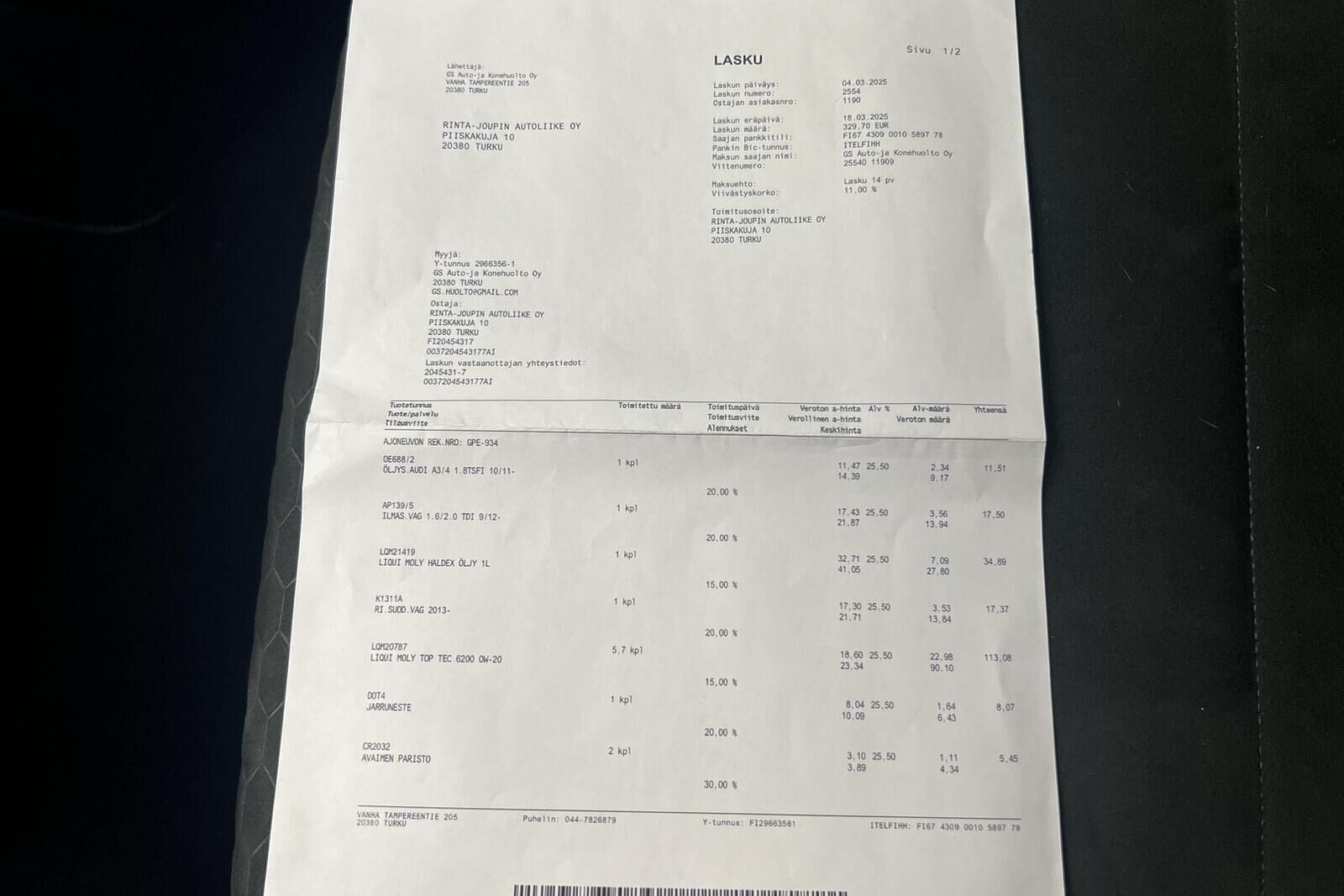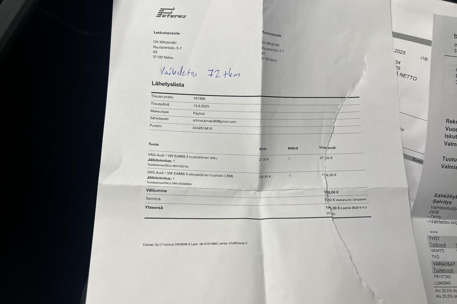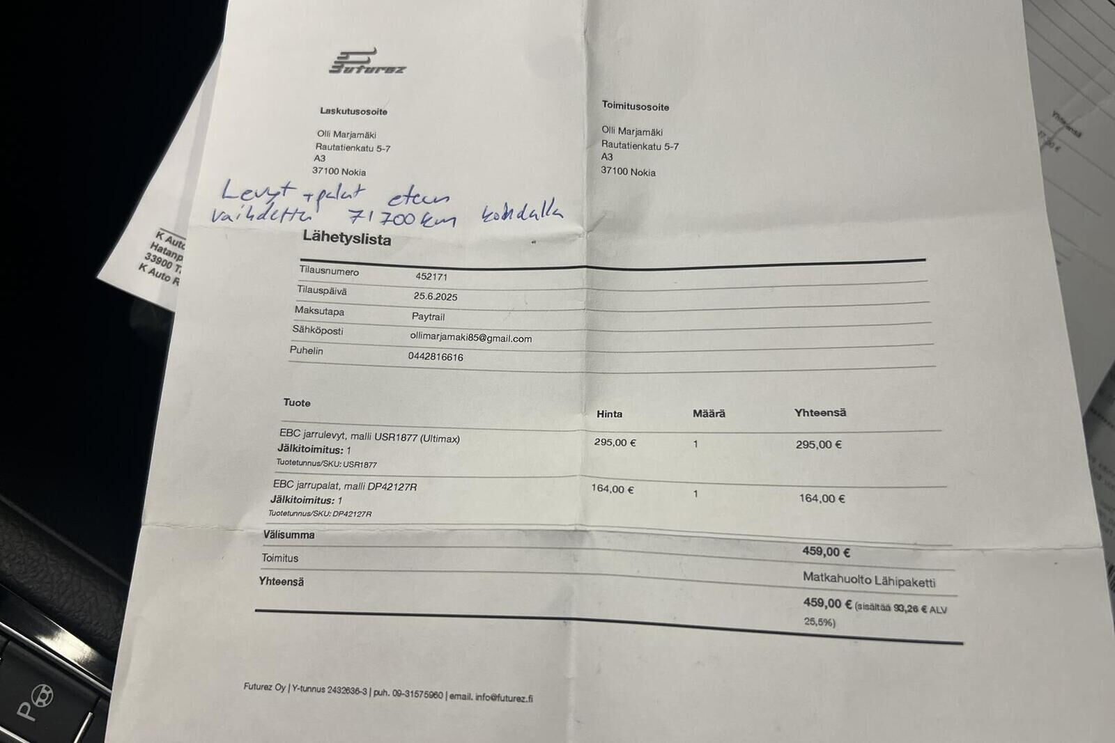 Tarkista tietojen oikeellisuus myyjältä.