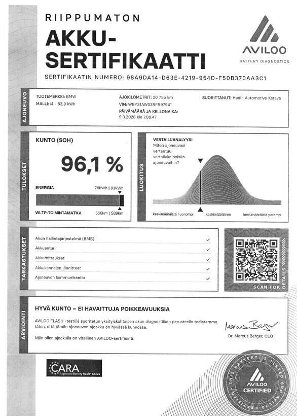 Kattavasti varusteltu täyssähköinen suosikki BMW i4 M60.