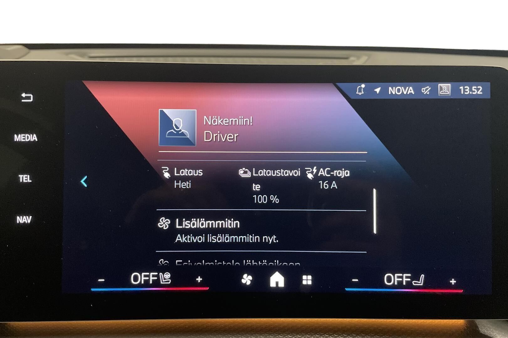 Lue lisää sähköauton lataamisestaTodellinen kulutus, latausaika ja toimintamatka saattavat poiketa ilmoitetusta johtuen auton iästä, ulkoisista tekijöistä kuten säätilasta ja käytettävästä latauslaitteesta sekä käyttäjän ajotavasta.