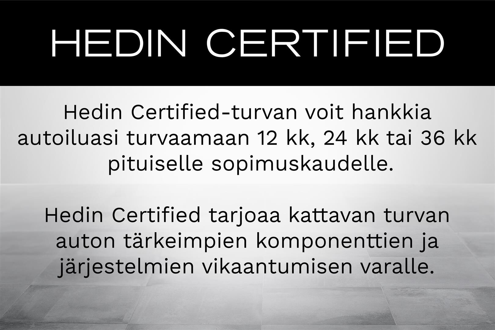 Hedin Certified -turvan tai Hedin Care Huoltorahan ostajalle rahoituskorko tähän autoon vain 1,99% (+kulut)!