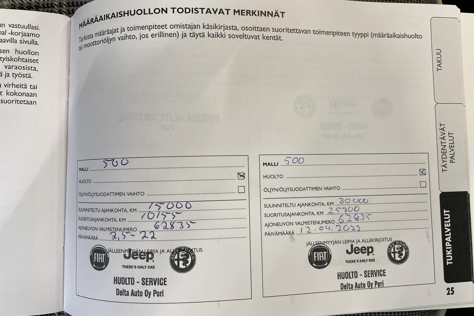 Viimeisin huolto tehty 68 tkm kohdalla 2/2026