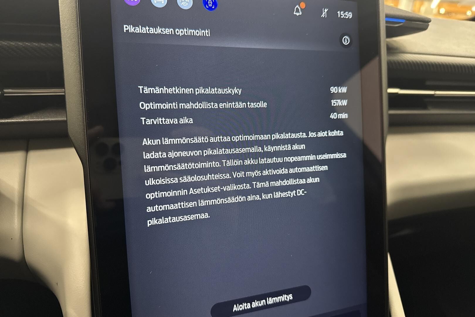 Lue lisää sähköauton lataamisestaTodellinen kulutus, latausaika ja toimintamatka saattavat poiketa ilmoitetusta johtuen auton iästä, ulkoisista tekijöistä kuten säätilasta ja käytettävästä latauslaitteesta sekä käyttäjän ajotavasta.