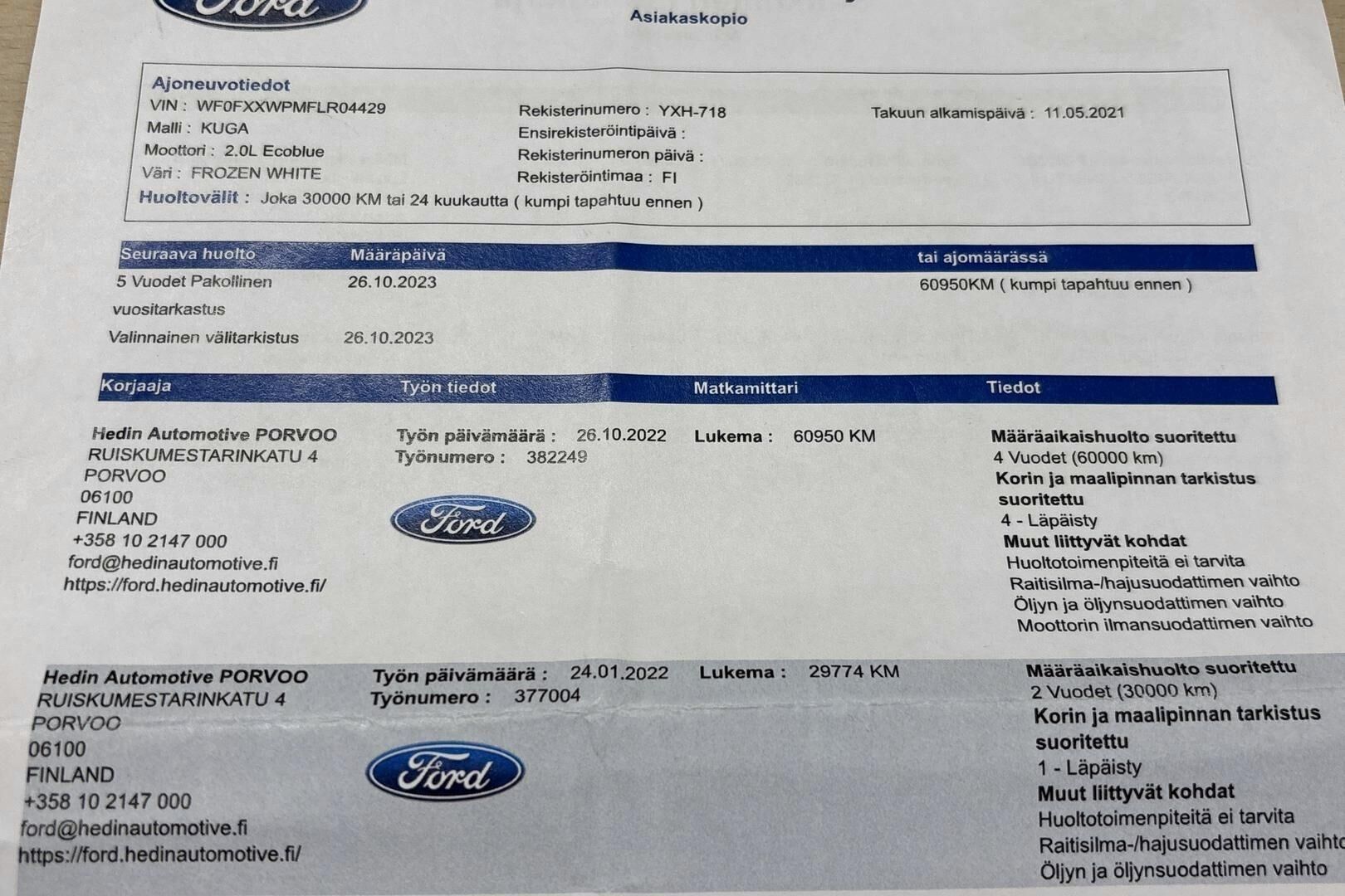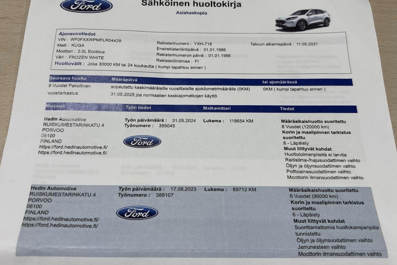 Viimeisin huolto tehty 146 tkm kohdalla 06/2025