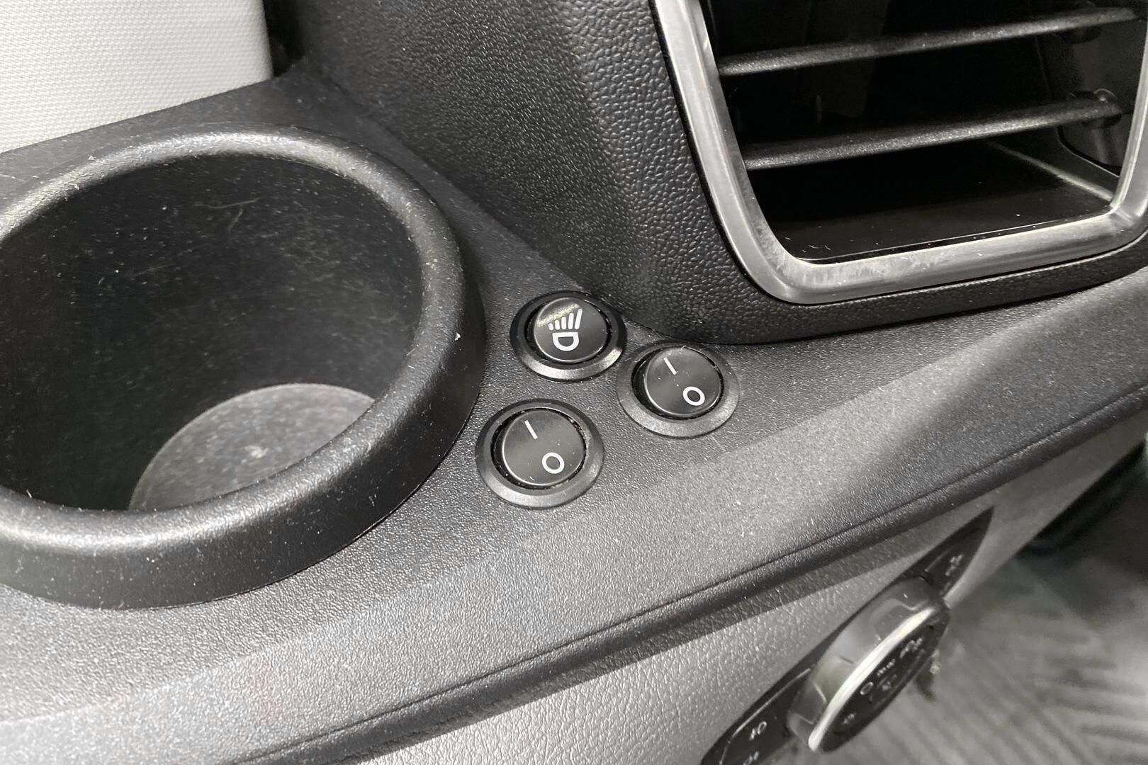 Etuistuimet: 1+2 istuimet; Kangasverhoilu, väri Ebony; Kuljettajan ja matkustajan istuin lämmitettävä; kuljettajan istuin 4-suuntaan manuaalisesti säädettävä, ristiseläntuella, kyynärnojallinen