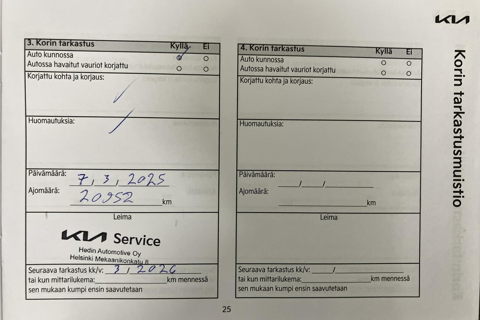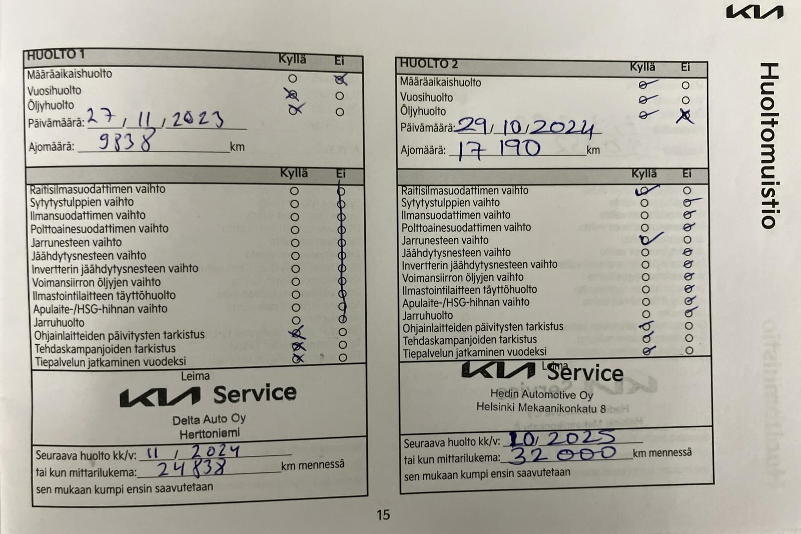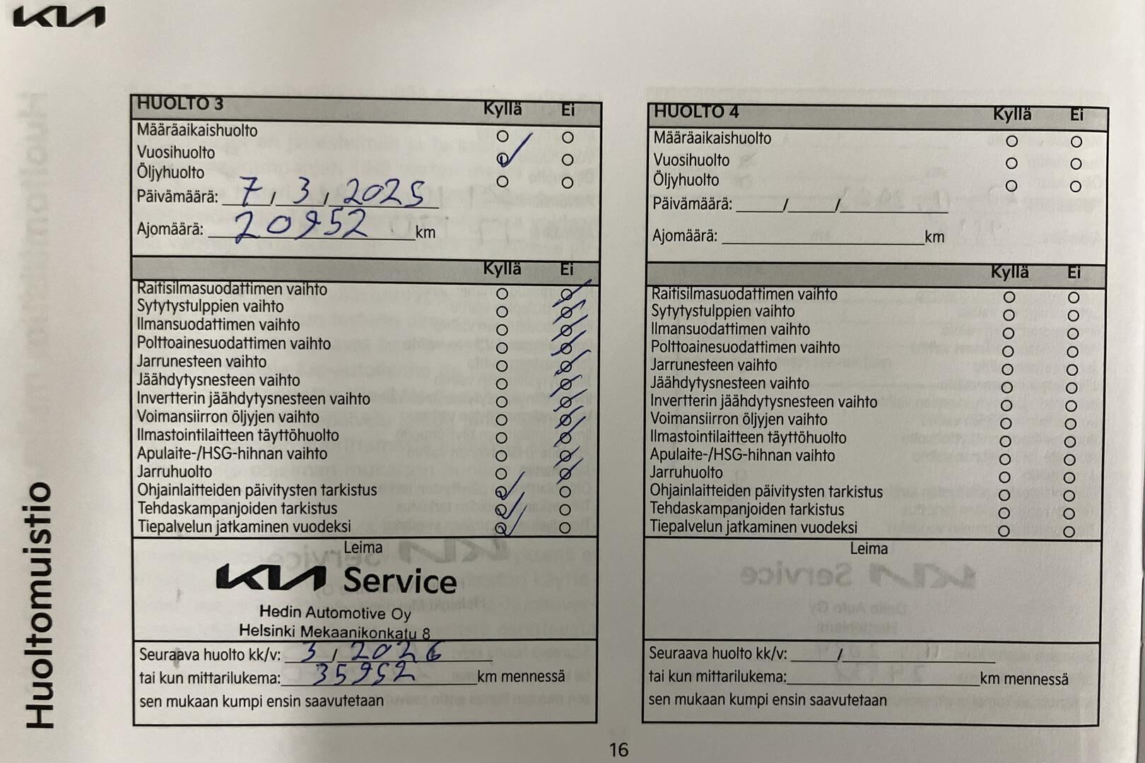 Viimeisin huolto tehty 03/2025