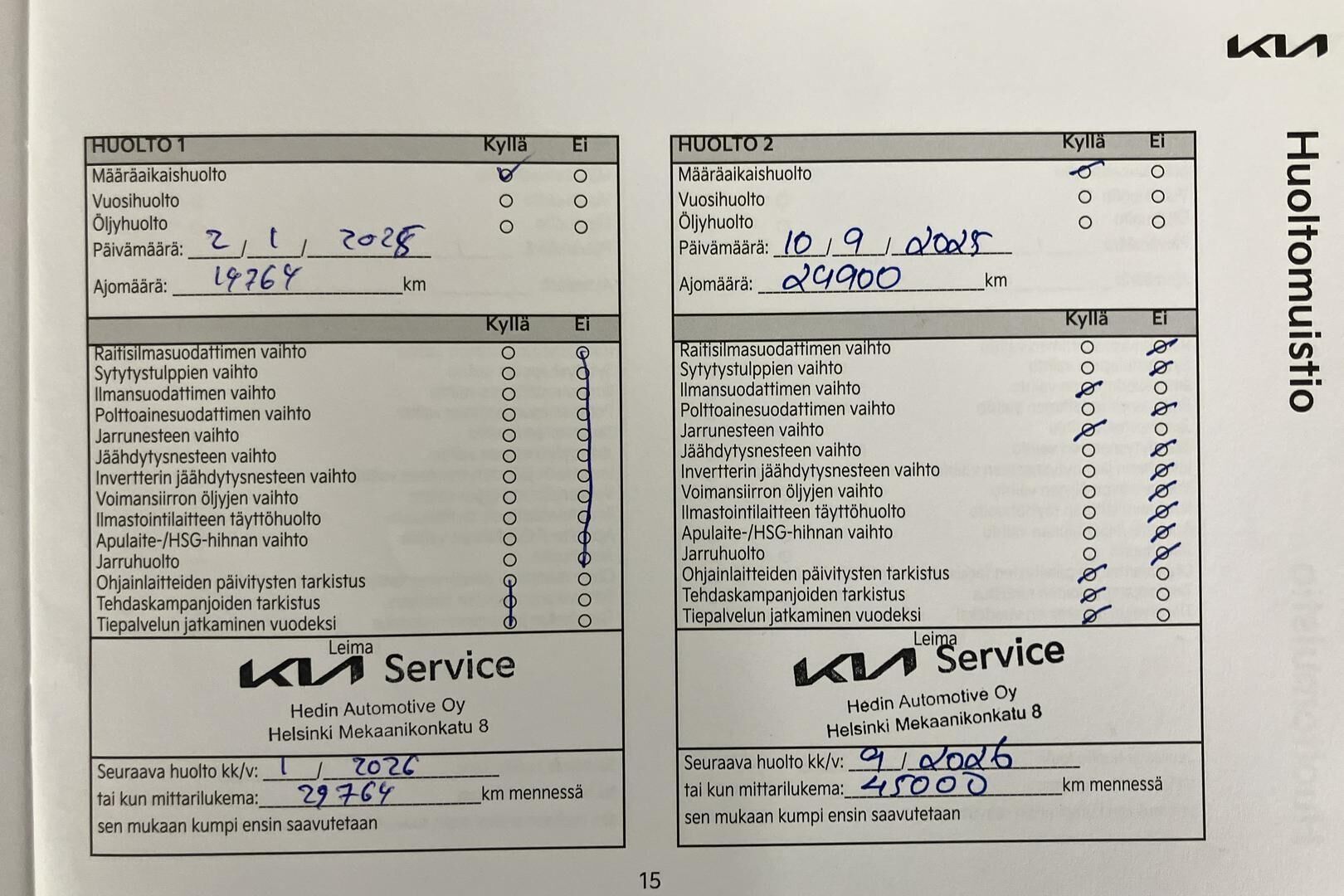 Viimeisin huolto tehty 09/2025