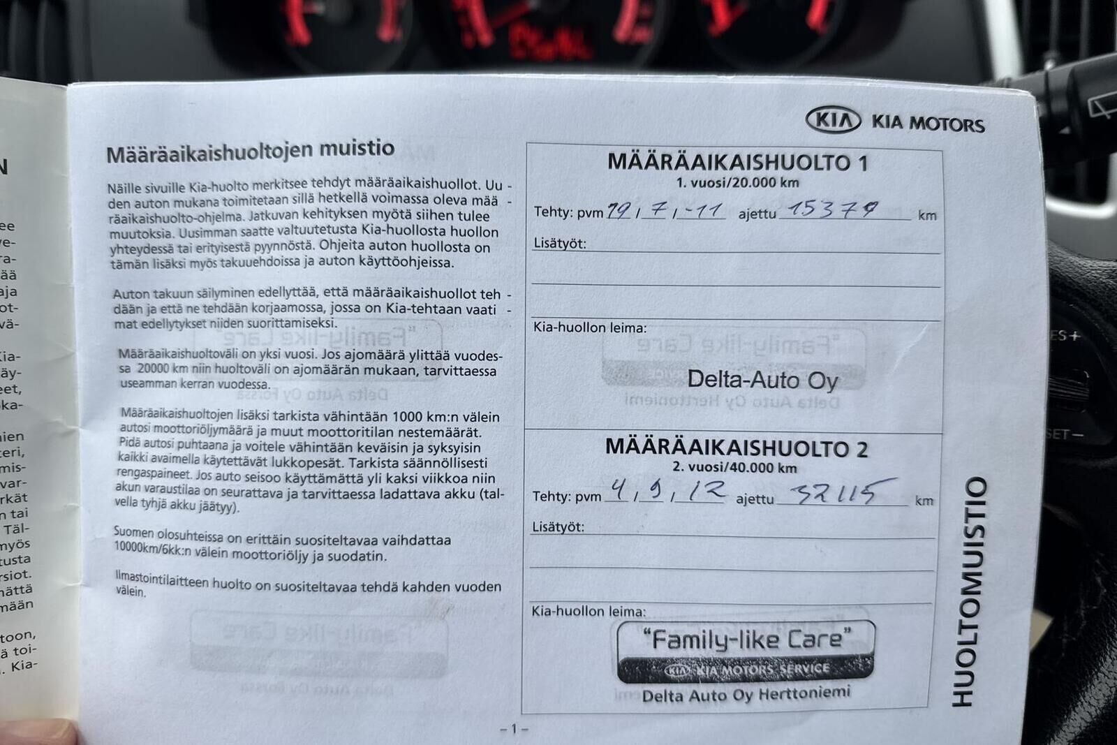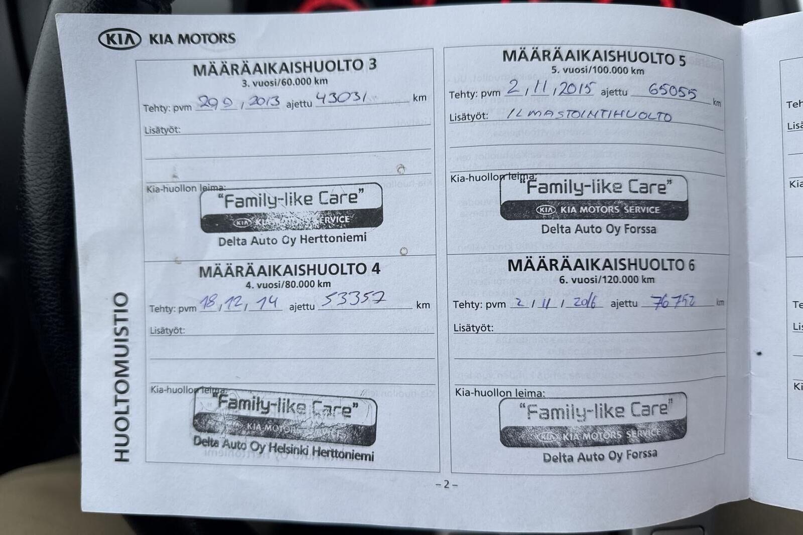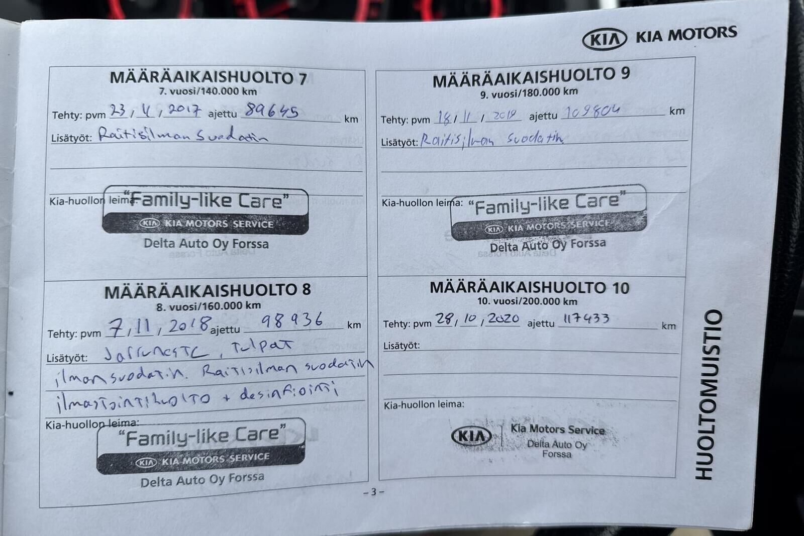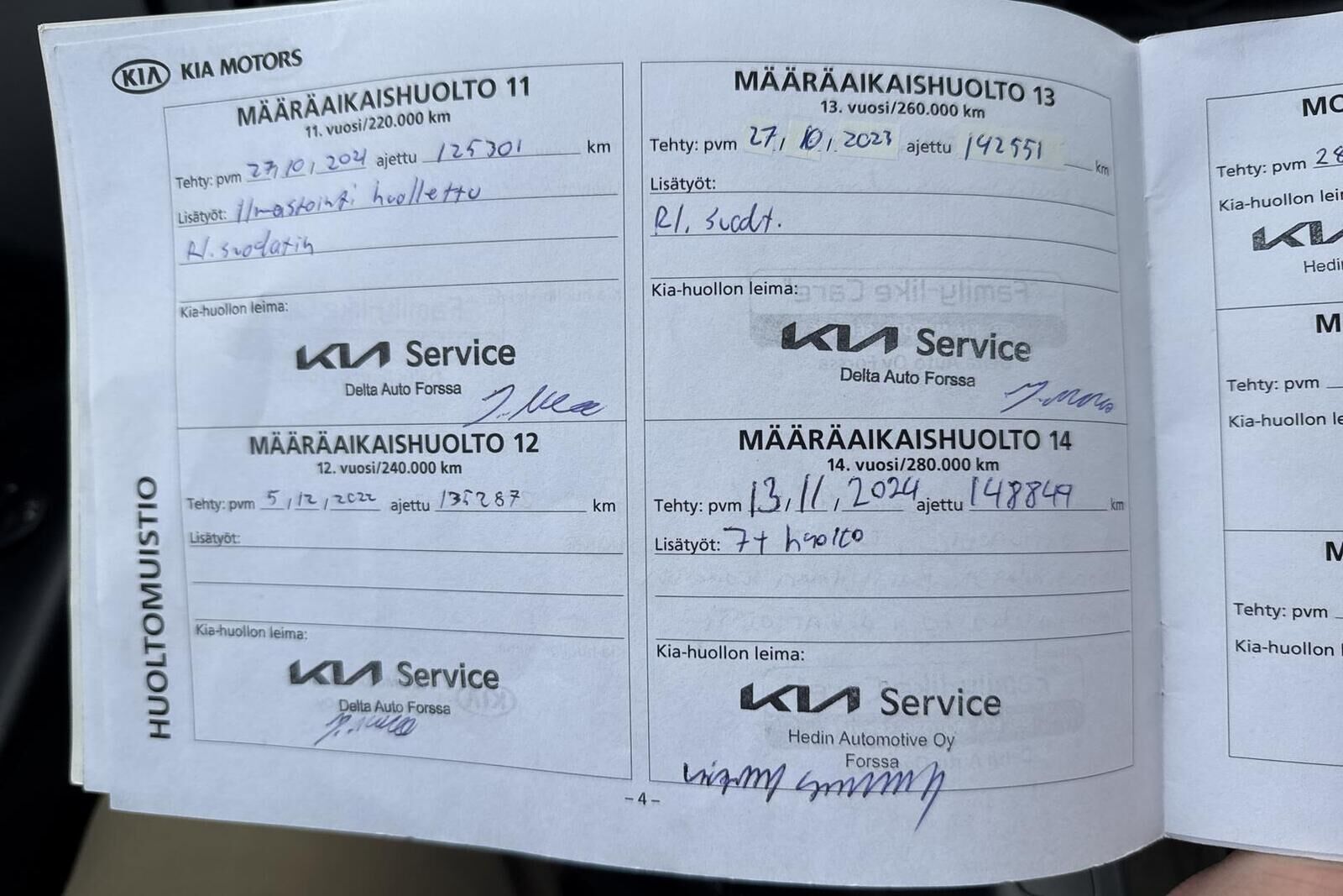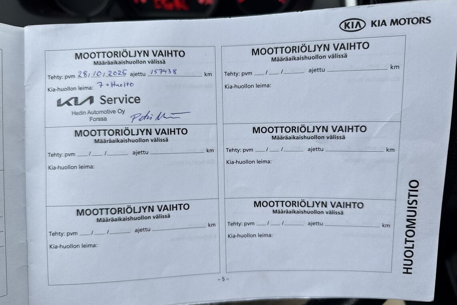 Viimeisin huolto tehty 28.10.2025 157.438km