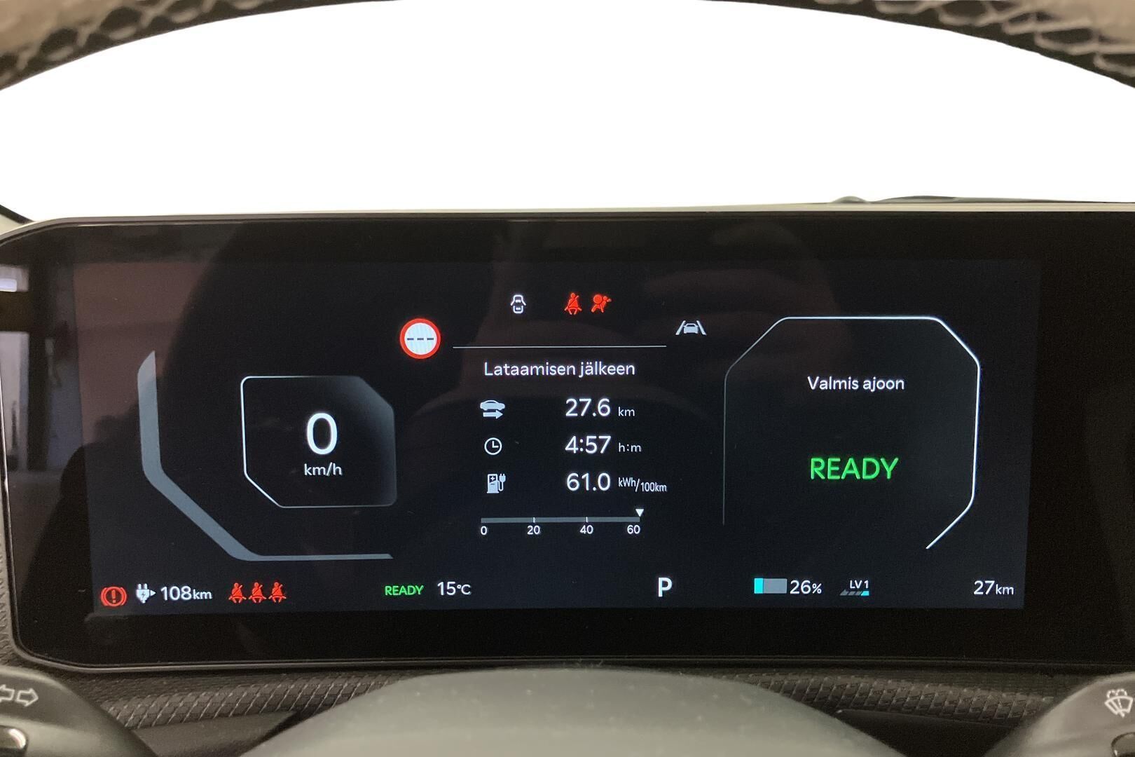 Lue lisää sähköauton lataamisestaTodellinen kulutus, latausaika ja toimintamatka saattavat poiketa ilmoitetusta johtuen auton iästä, ulkoisista tekijöistä kuten säätilasta ja käytettävästä latauslaitteesta sekä käyttäjän ajotavasta.