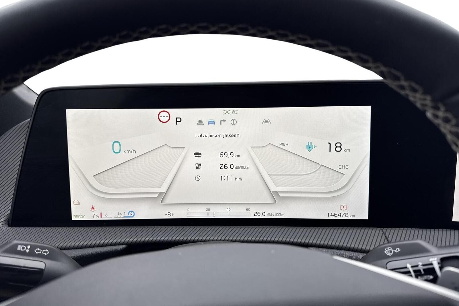 Lue lisää sähköauton lataamisestaTodellinen kulutus, latausaika ja toimintamatka saattavat poiketa ilmoitetusta johtuen auton iästä, ulkoisista tekijöistä kuten säätilasta ja käytettävästä latauslaitteesta sekä käyttäjän ajotavasta.