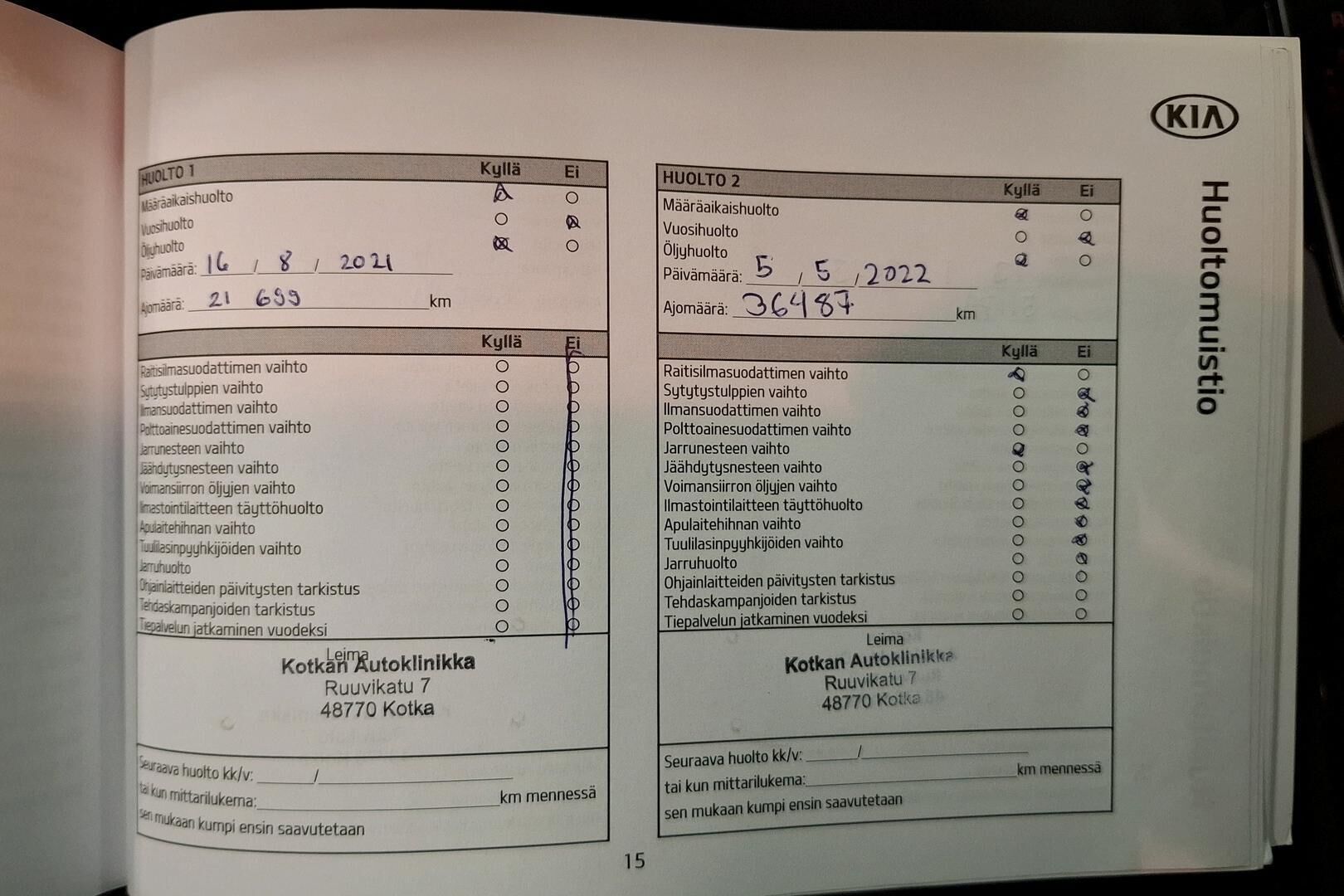 Huoltokirja, viimeisin huolto tehty 08/2025, 100 000 km