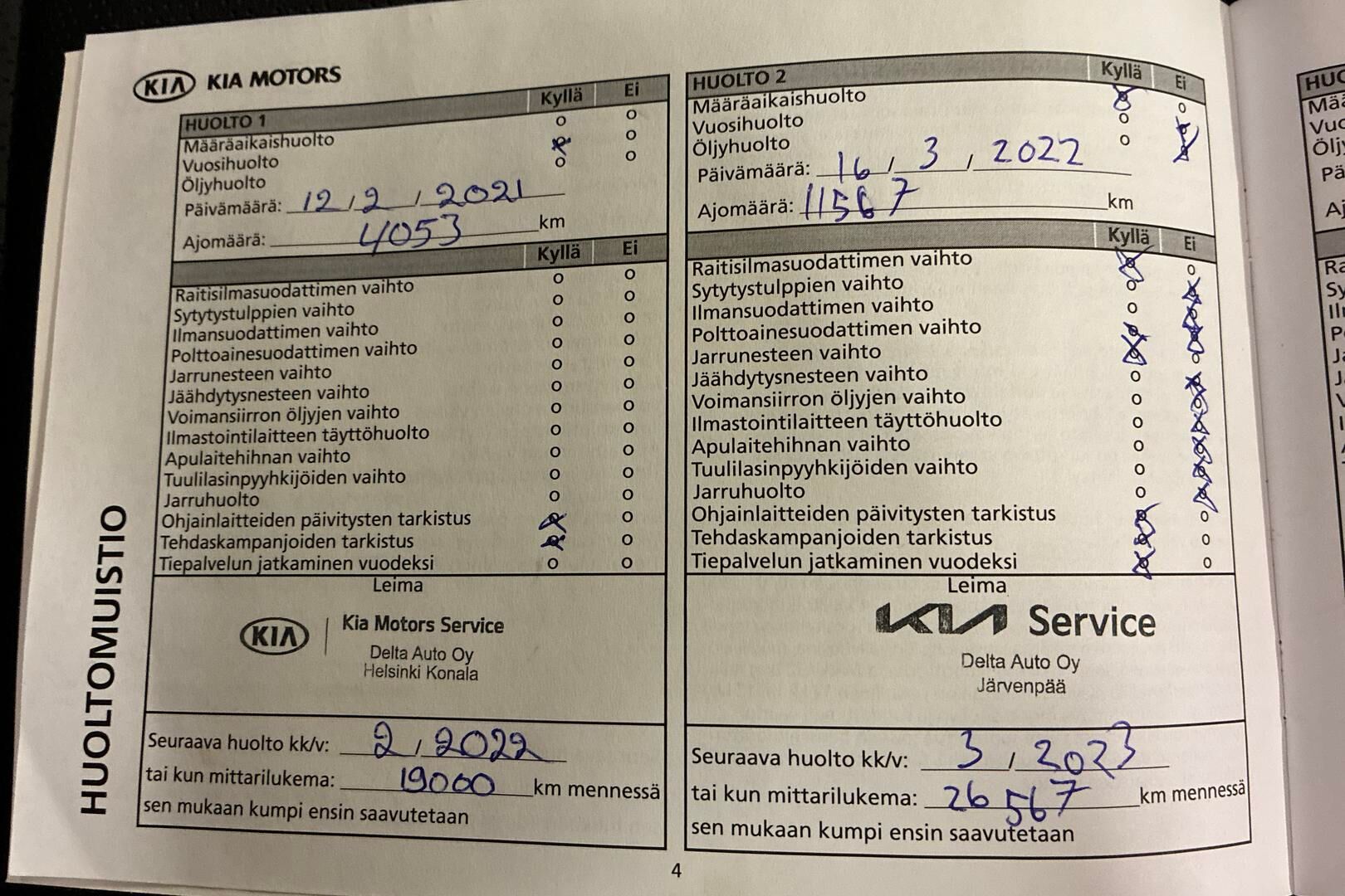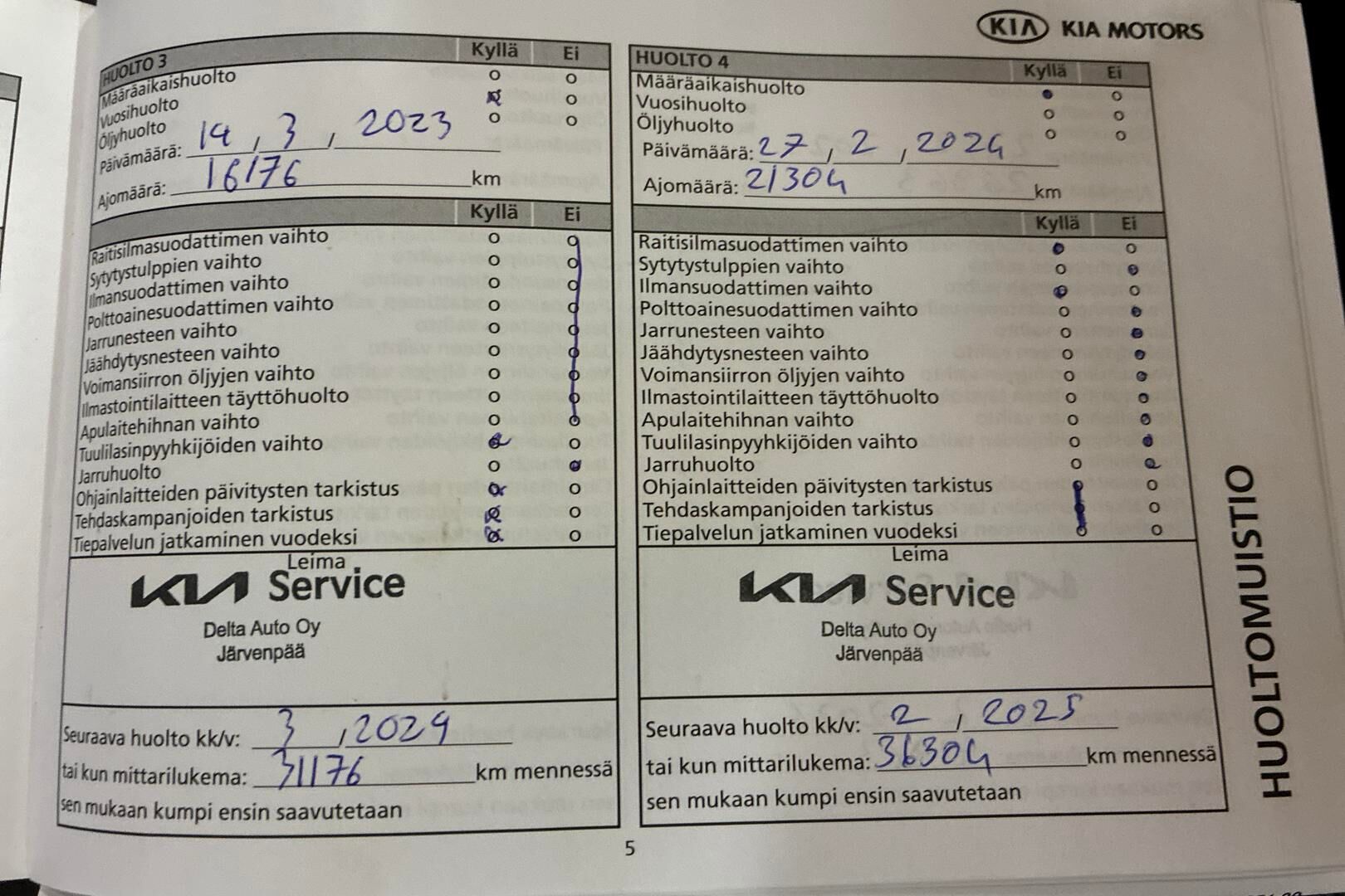 Viimeisin huolto tehty 03/2025