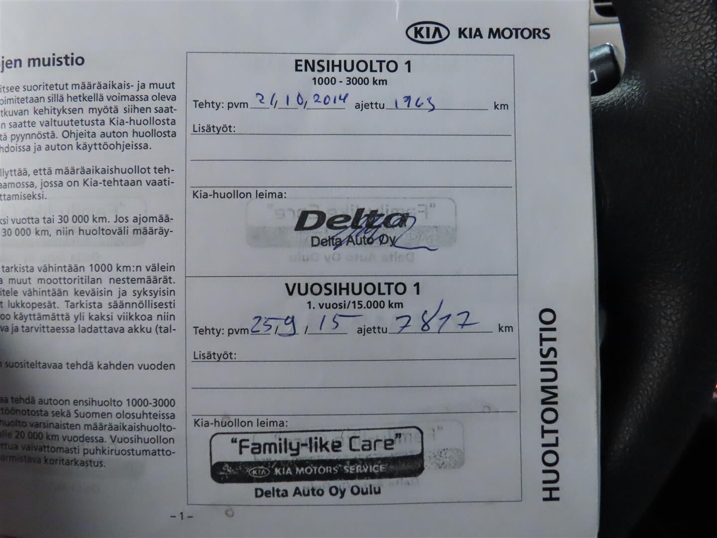 Täydellinen merkkiliikkeen huoltokirja