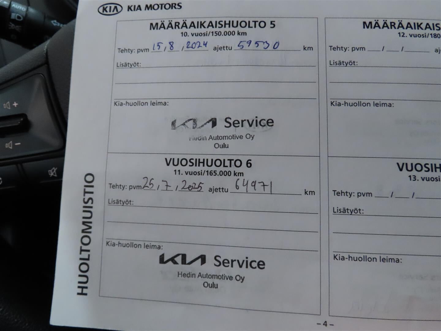Viimeisin huolto tehty 8/2025