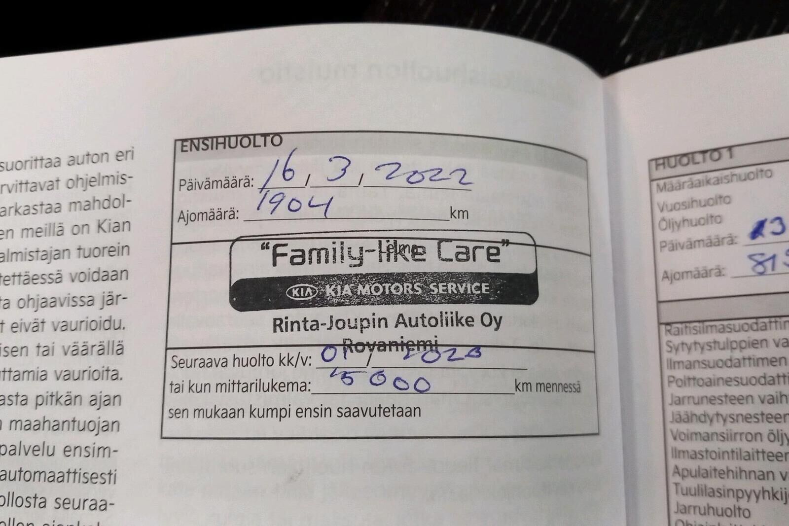 Viimeisin huolto tehty 1/2026