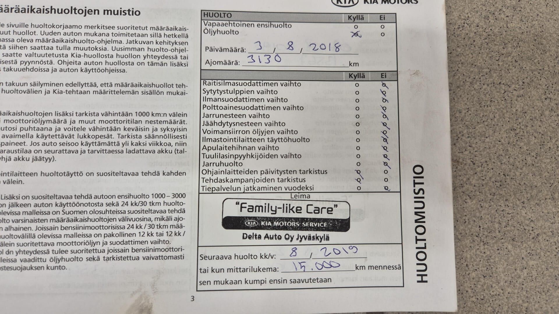 Täydellinen merkkiliikkeen huoltokirja