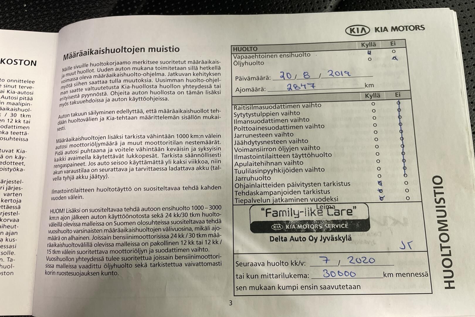 Täydellinen merkkiliikkeen huoltokirja