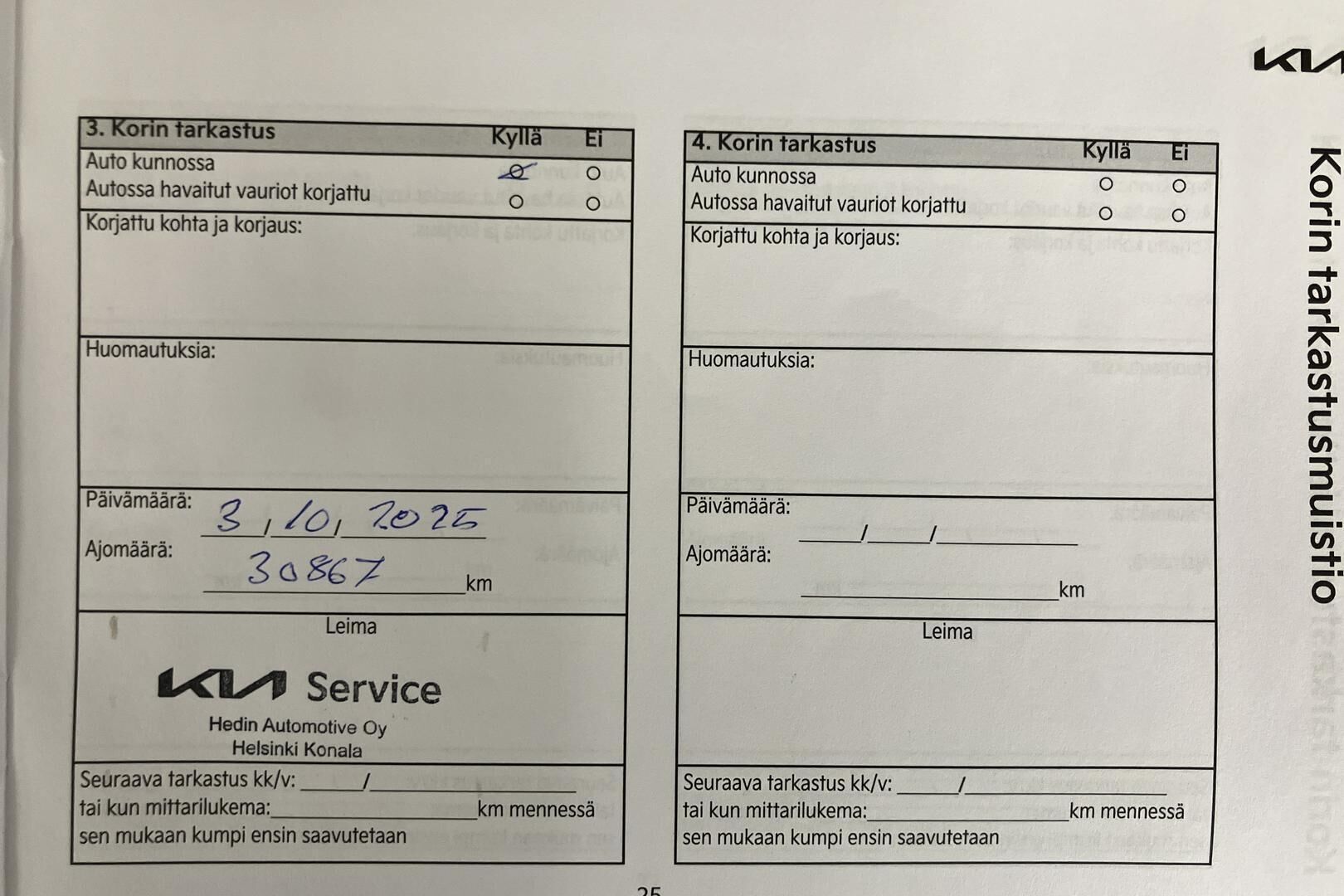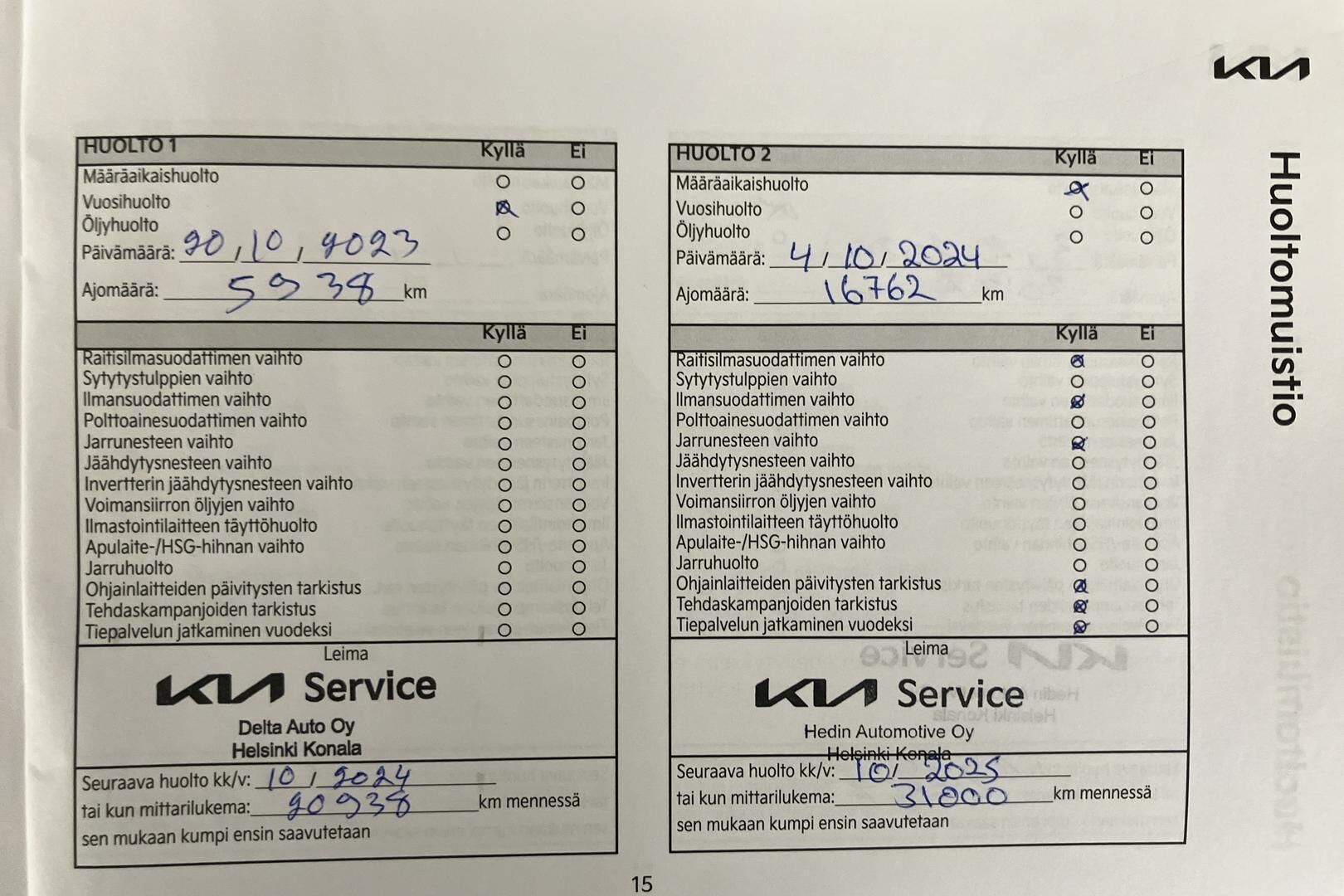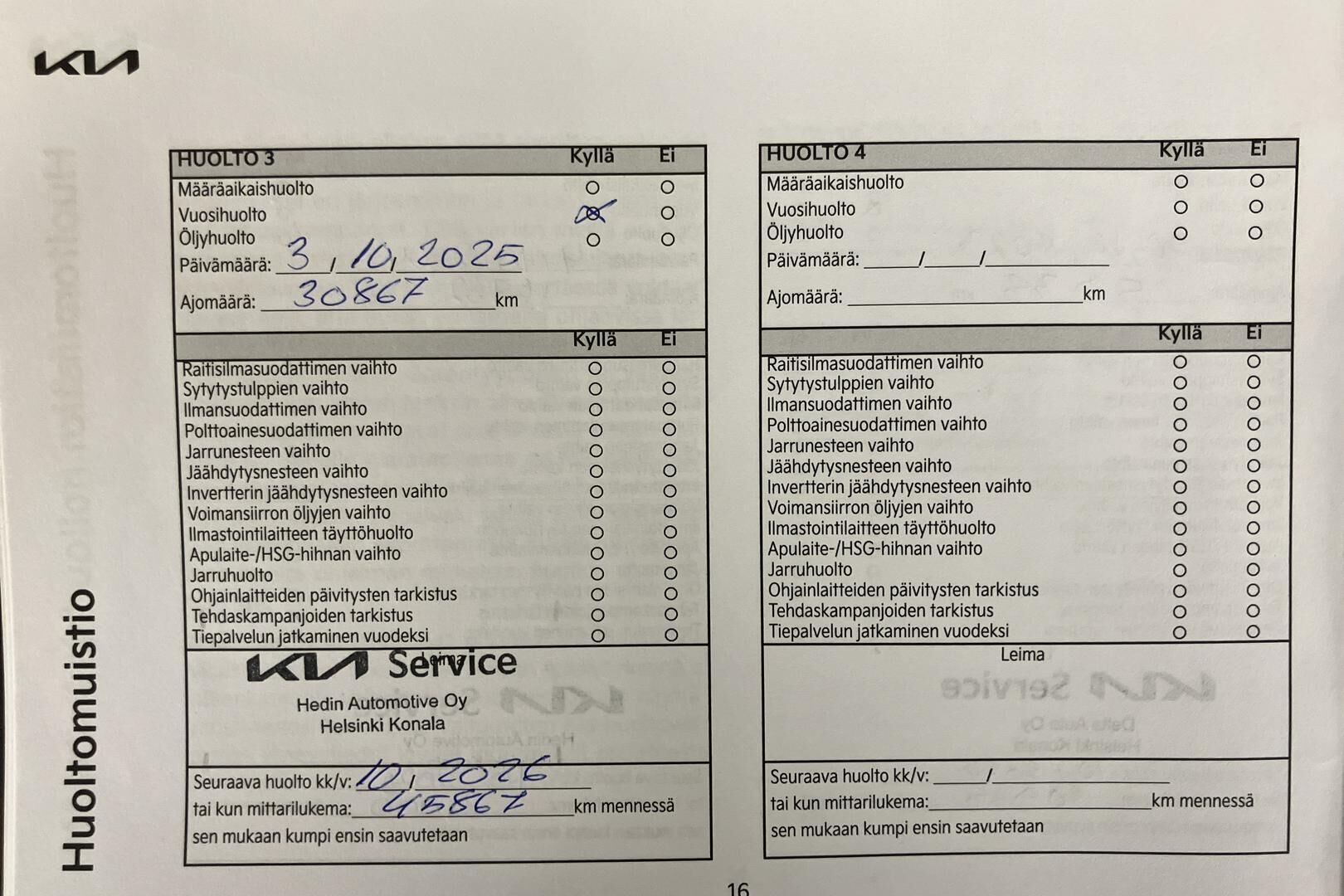 Viimeisin huolto tehty 10/2025
