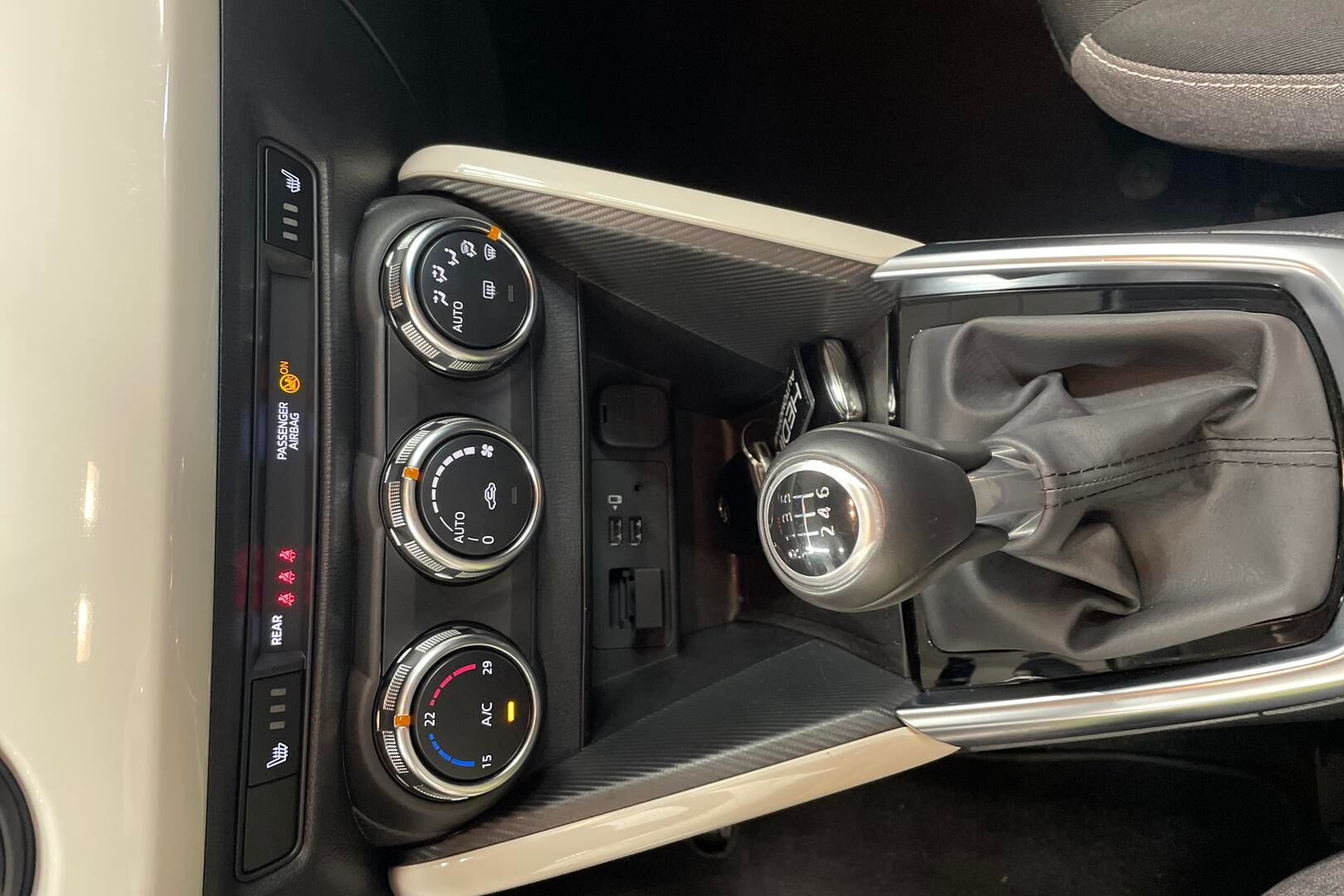 Nahkapäällysteiset vaihteenvalitsimen nuppi ja käsijarrukahva