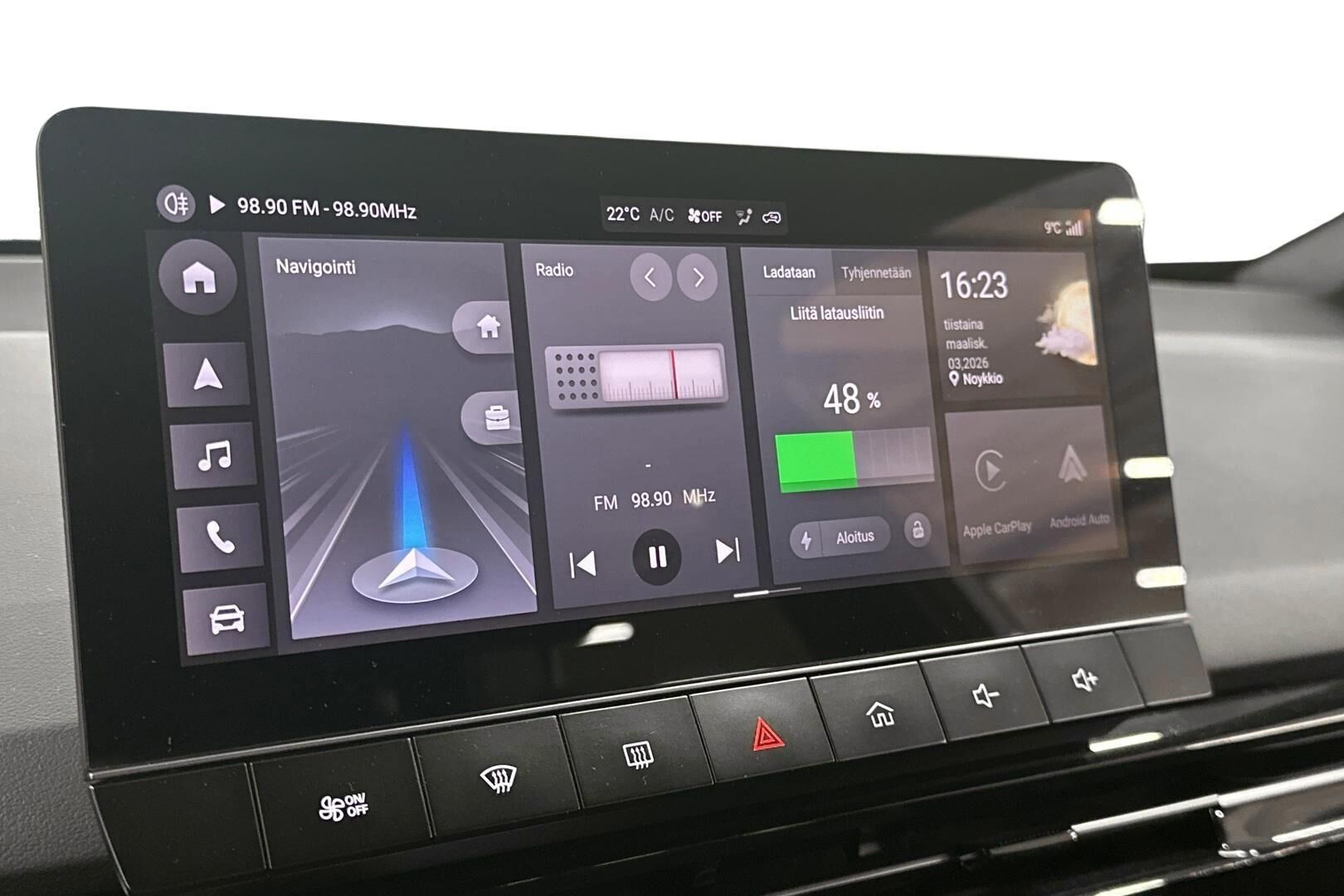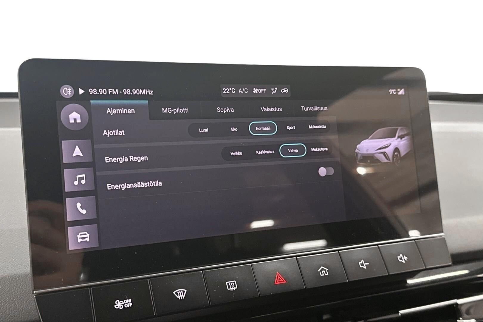 Tämä auto on täyssähköauto (BEV). Ilmoituksen kulutustiedot, latausajat sekä sähköinen toimintamatka ovat valmistajan ilmoittamia. Todellinen kulutus, latausaika ja toimintamatka saattavat poiketa ilmoitetusta johtuen auton iästä, ulkoisista tekijöistä kuten säätilasta ja käytettävästä latauslaitteesta sekä käyttäjän ajotavasta.