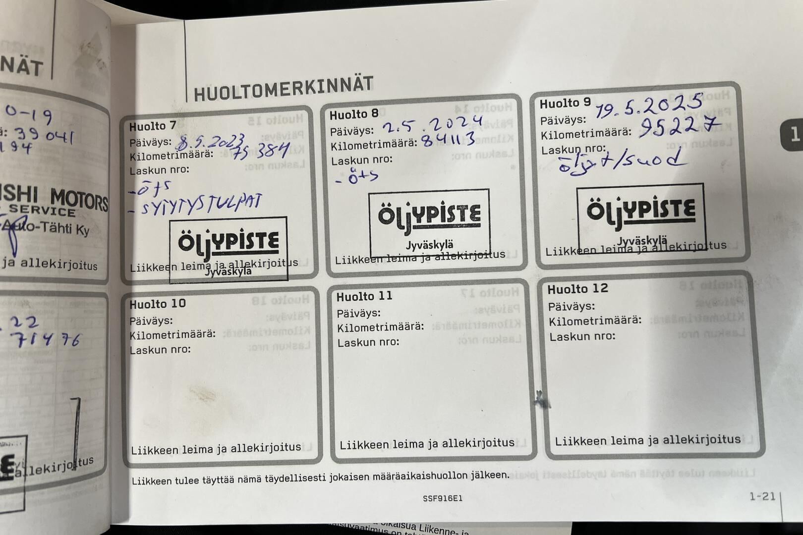 Viimeisin huolto tehty: 5/2025 / 95 tkm.