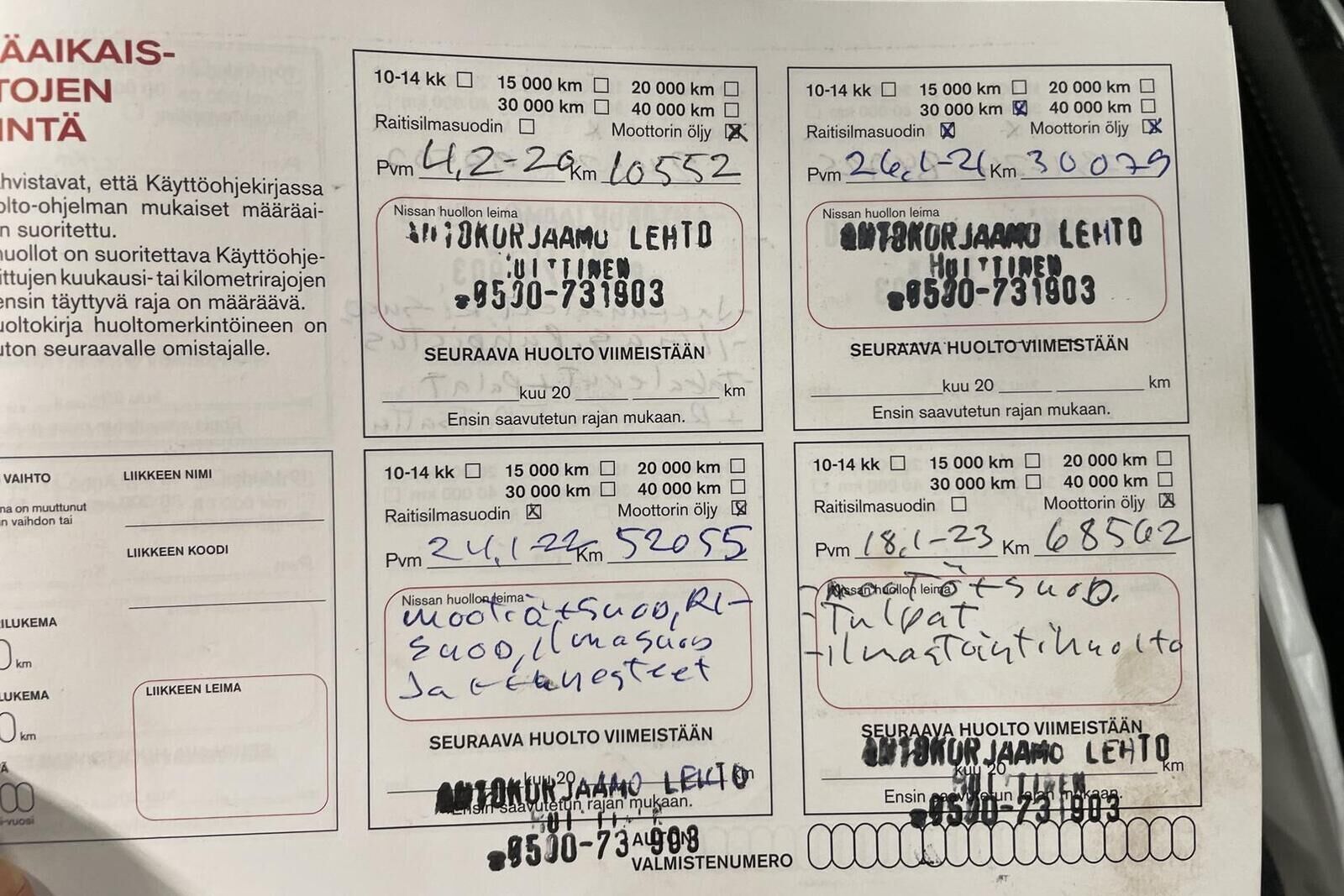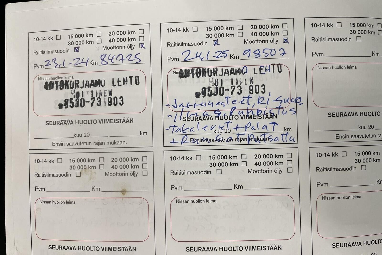 Viimeisin huolto tehty: 1/2025 98tkm