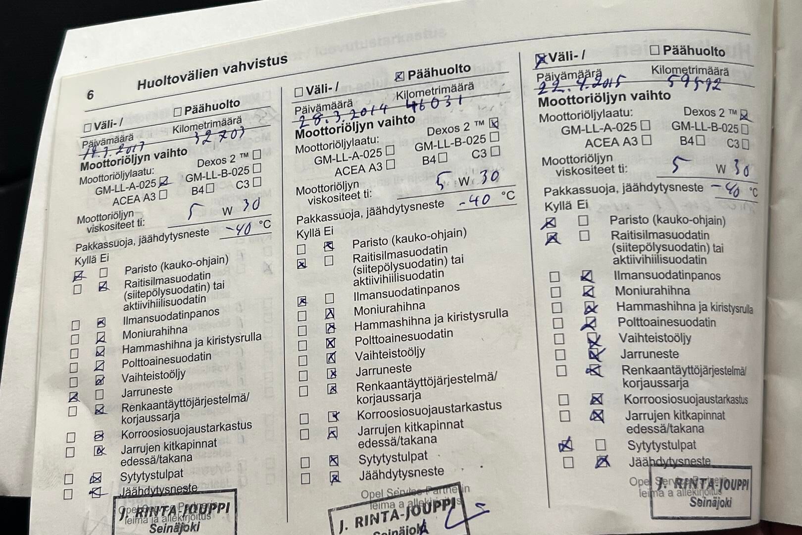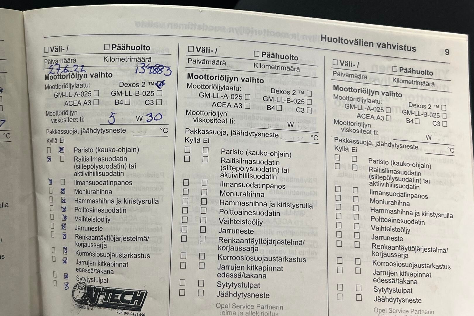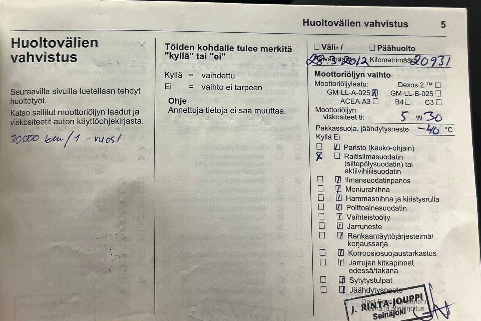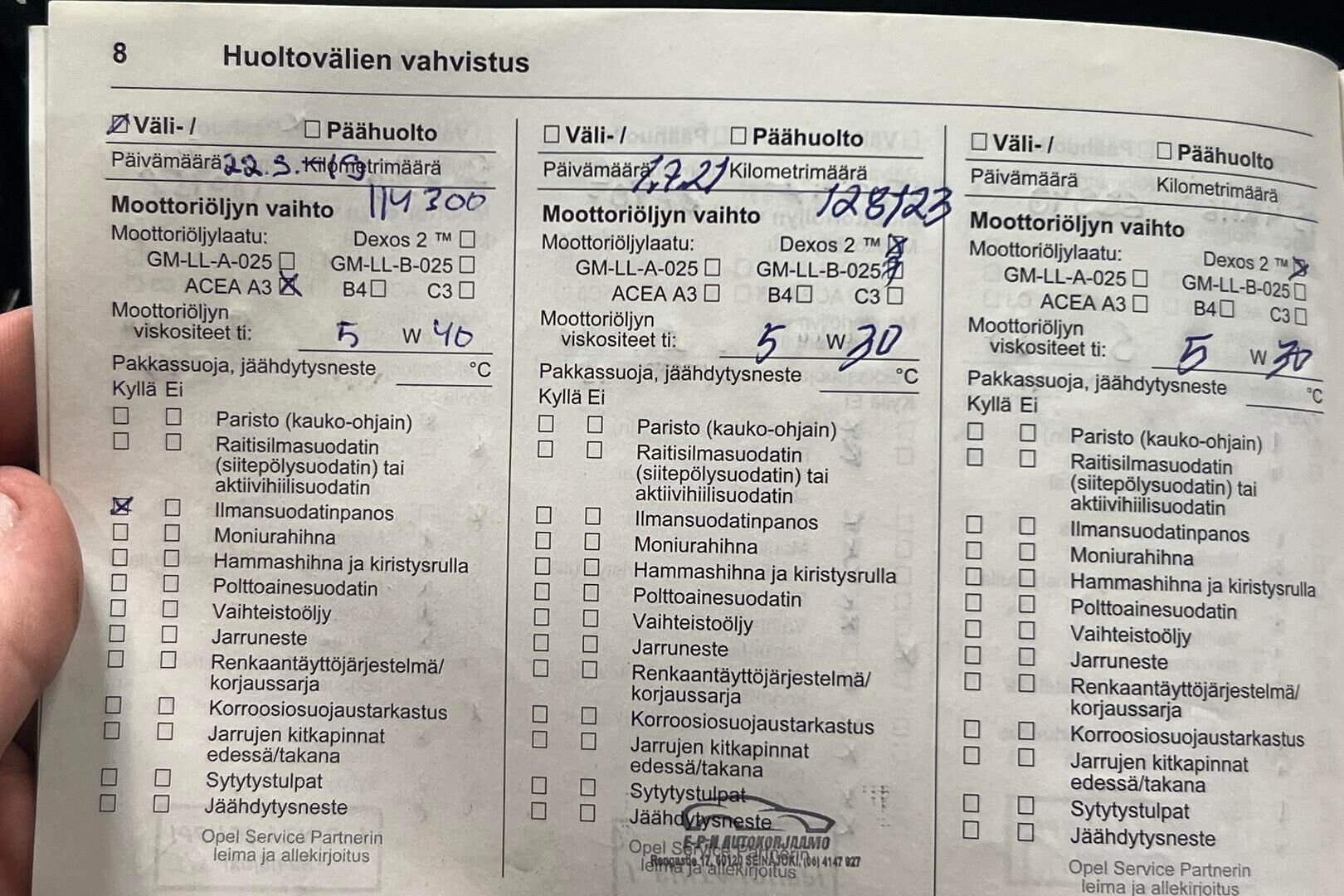 Huoltokirja, osittainen.