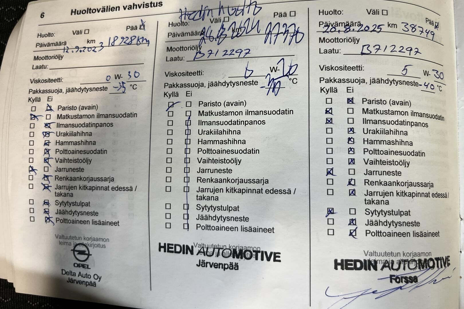 Viimeisin huolto tehty 20.8.2025 38.749km