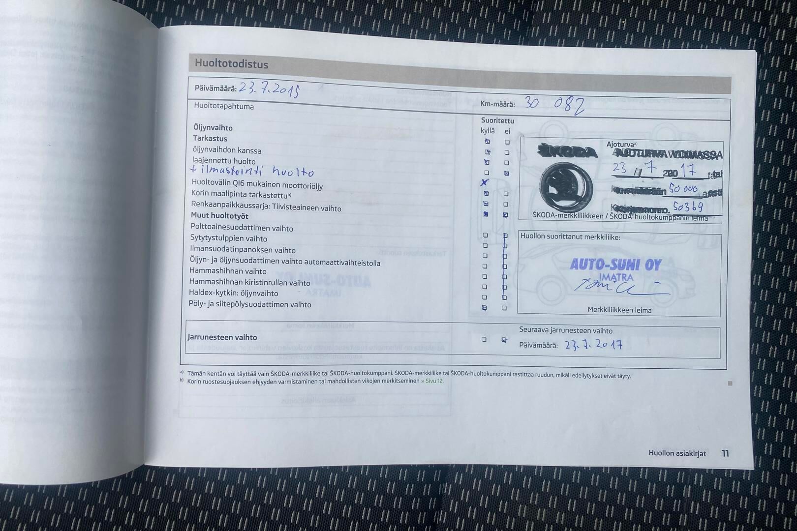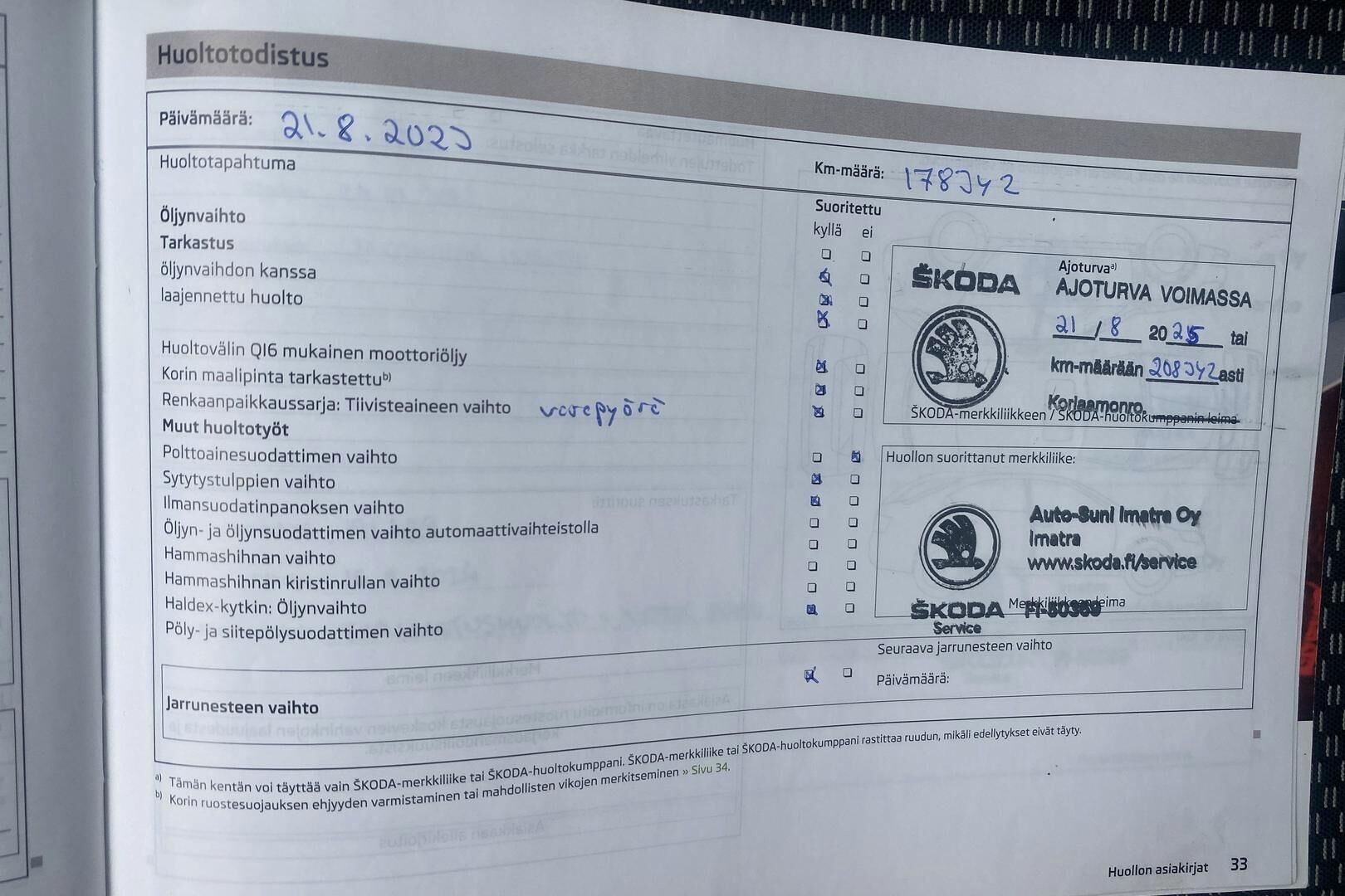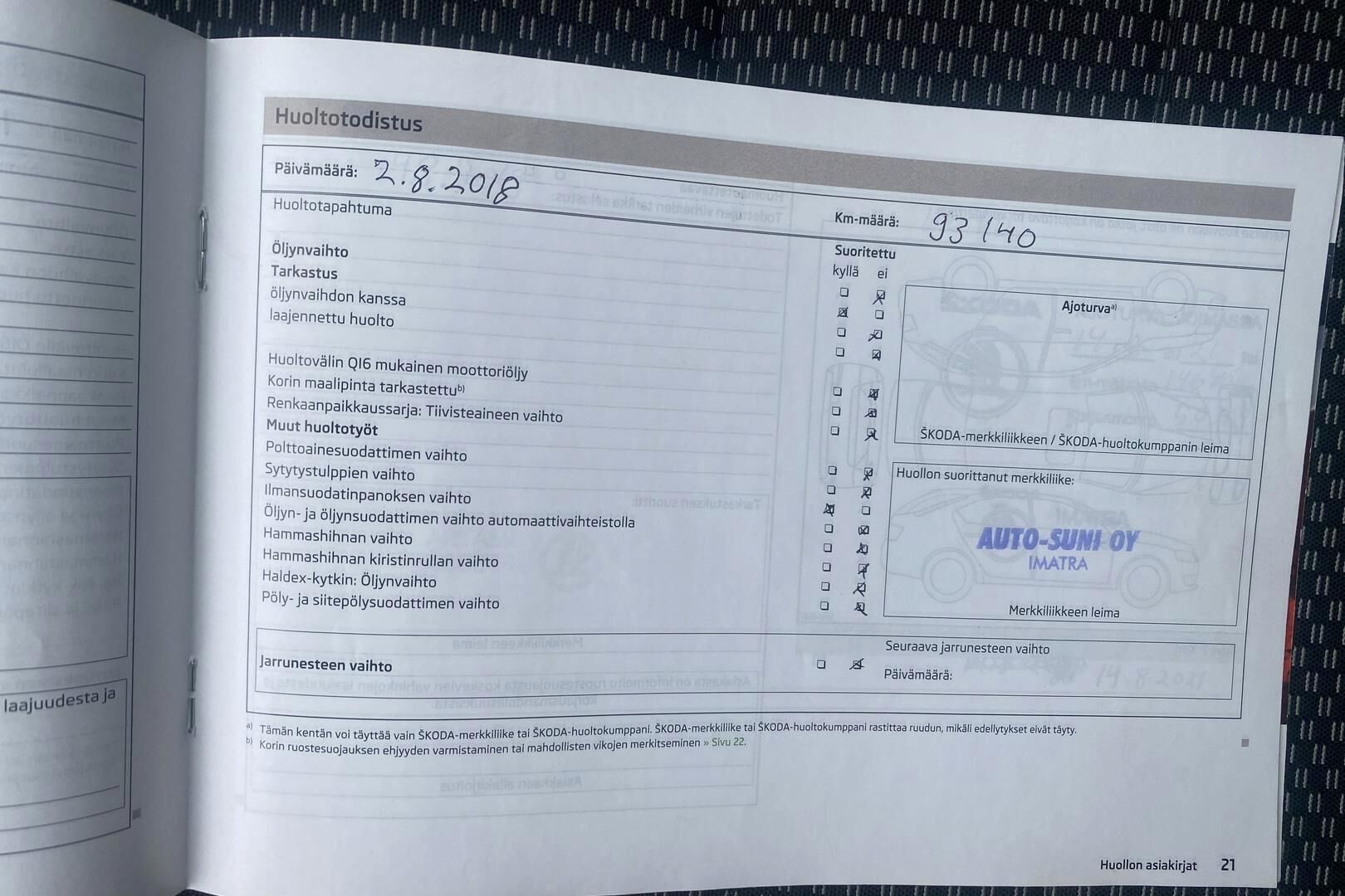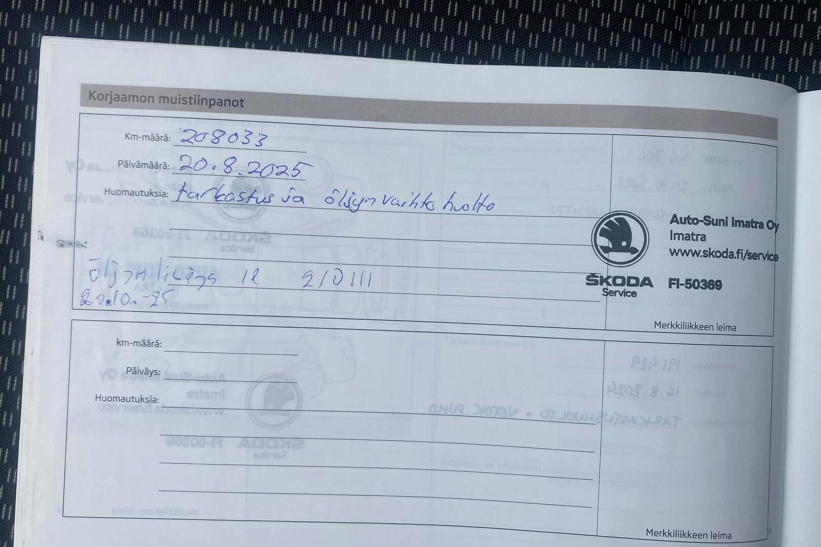 Merkkiliikkeen huoltokirja