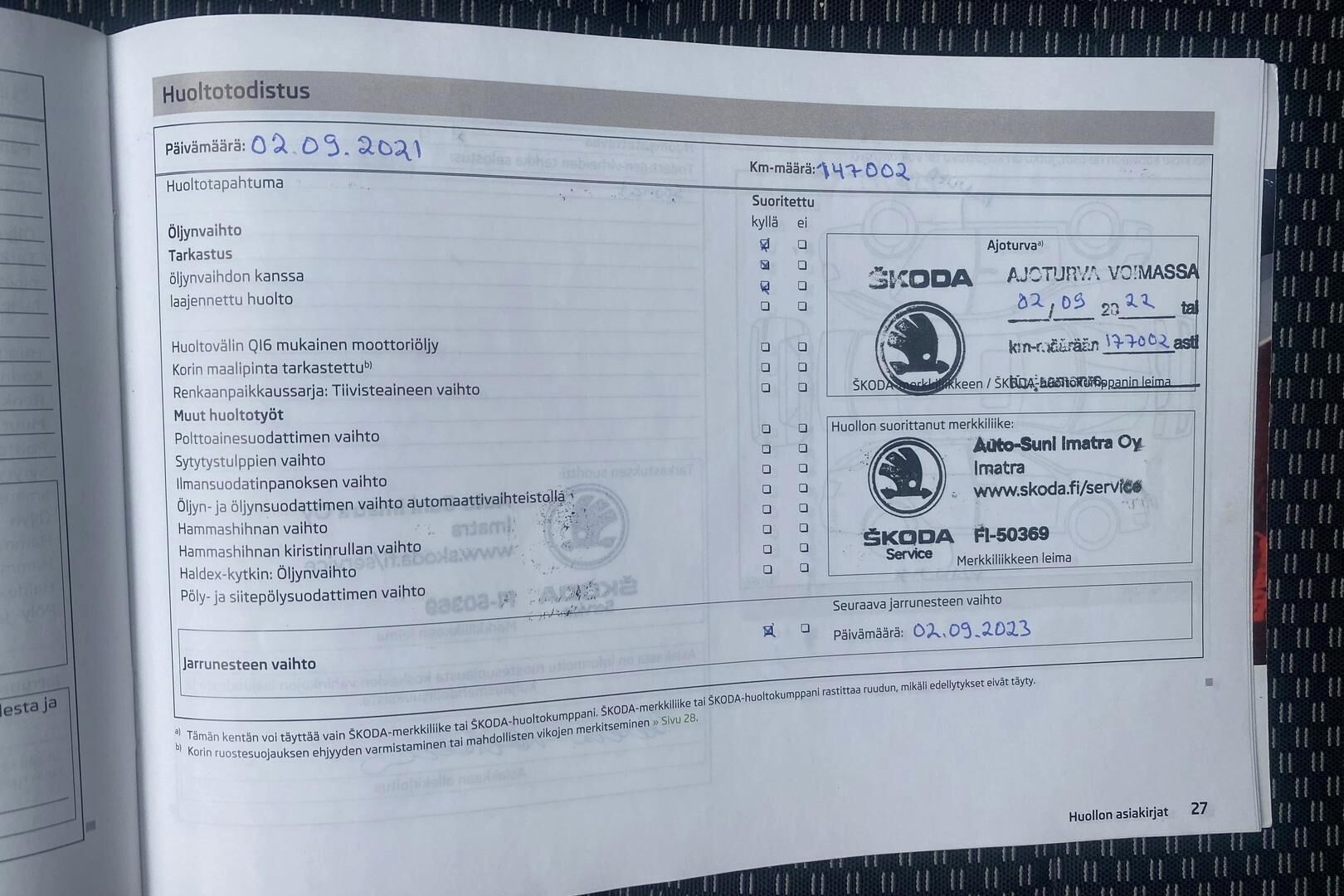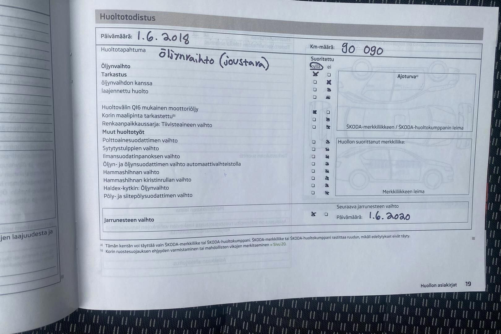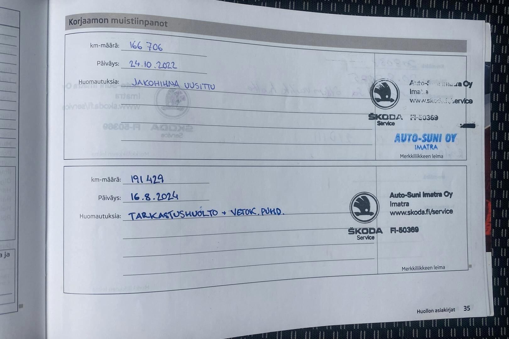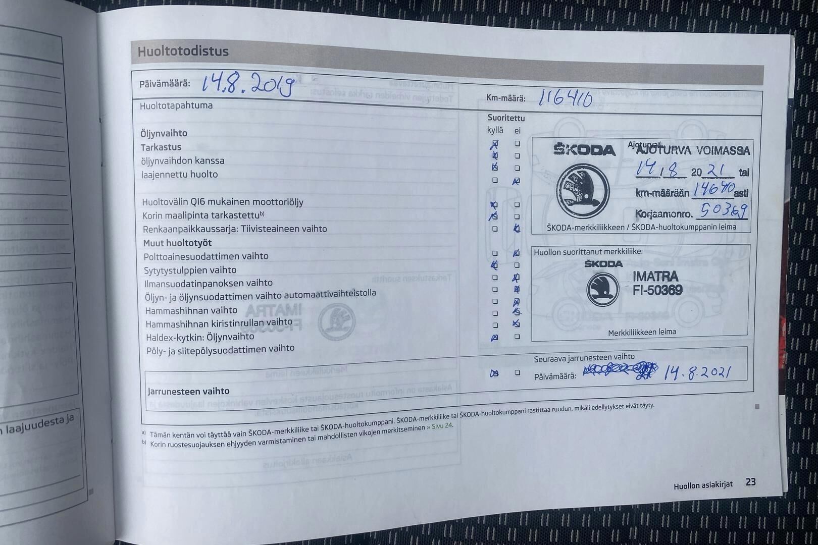 Merkkiliikkeen huoltokirja