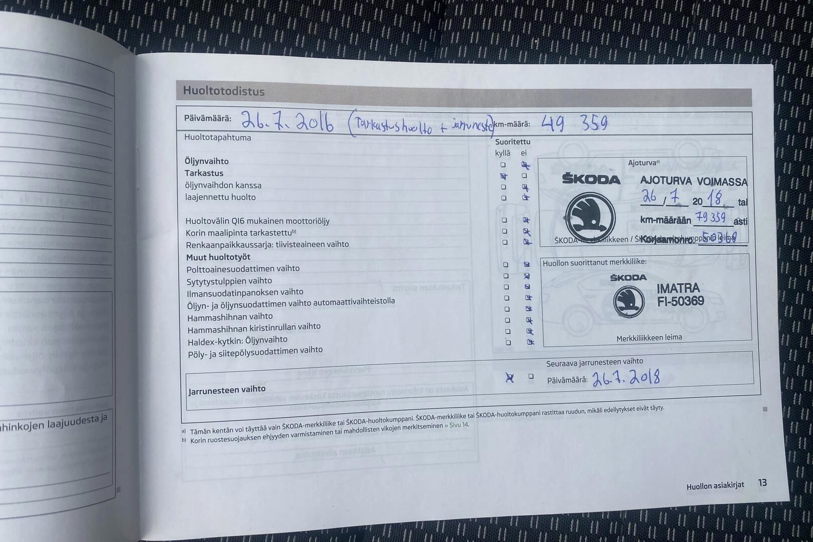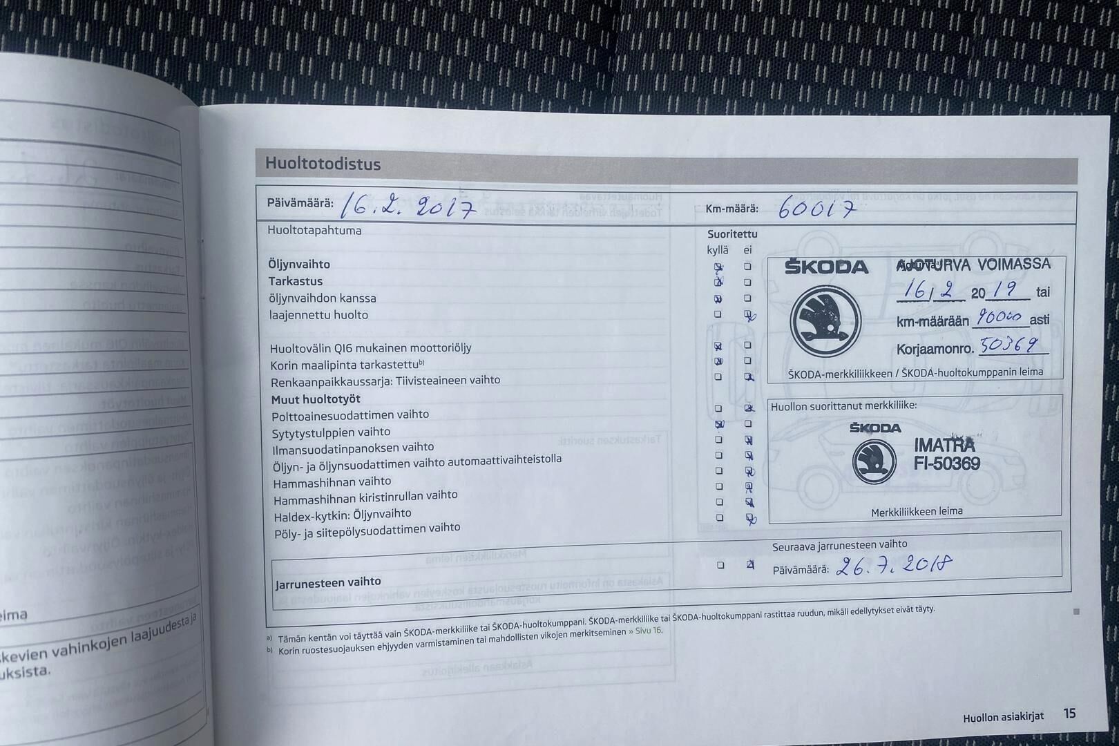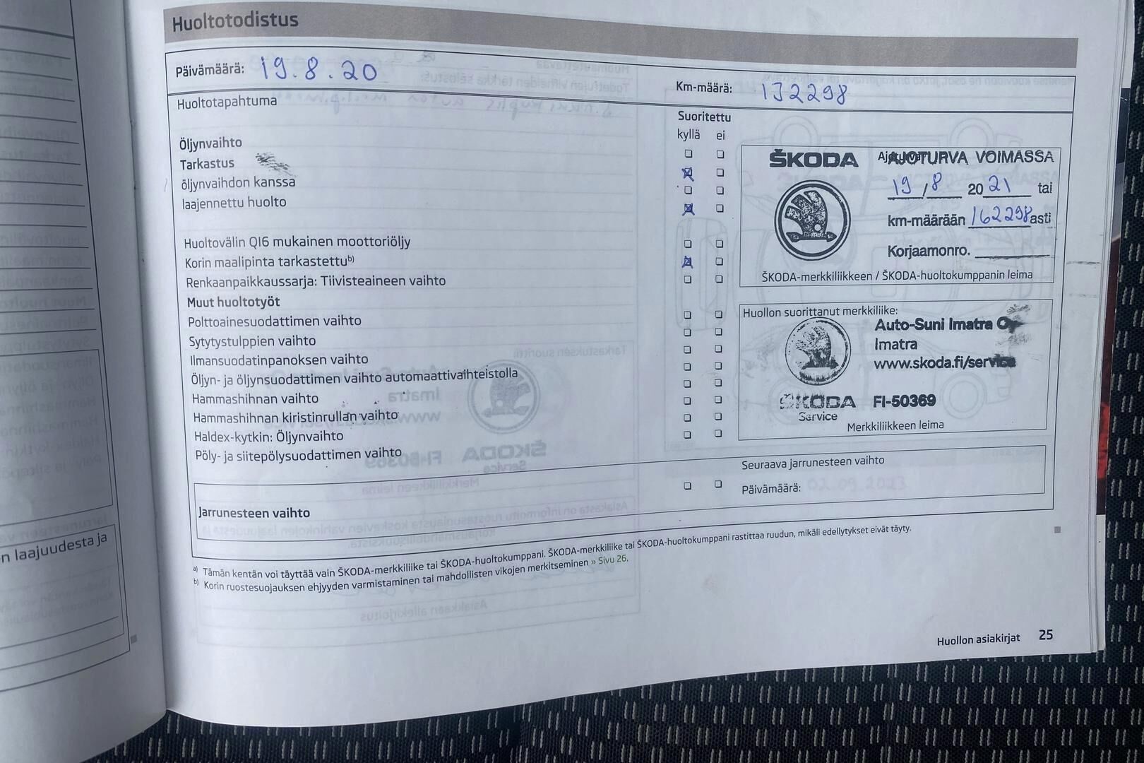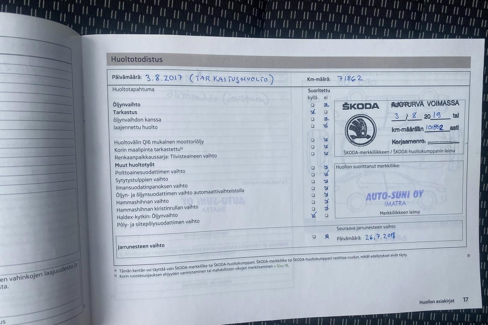 Merkkiliikkeen huoltokirja