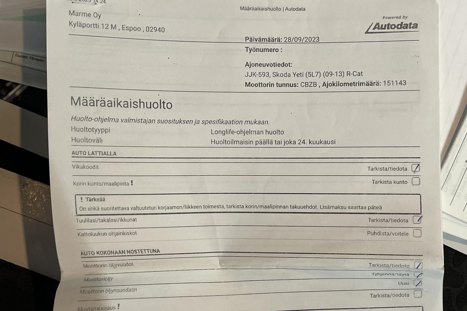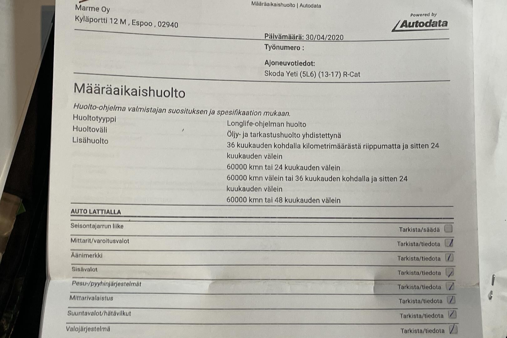 Tarkista tietojen oikeellisuus myyjältä.