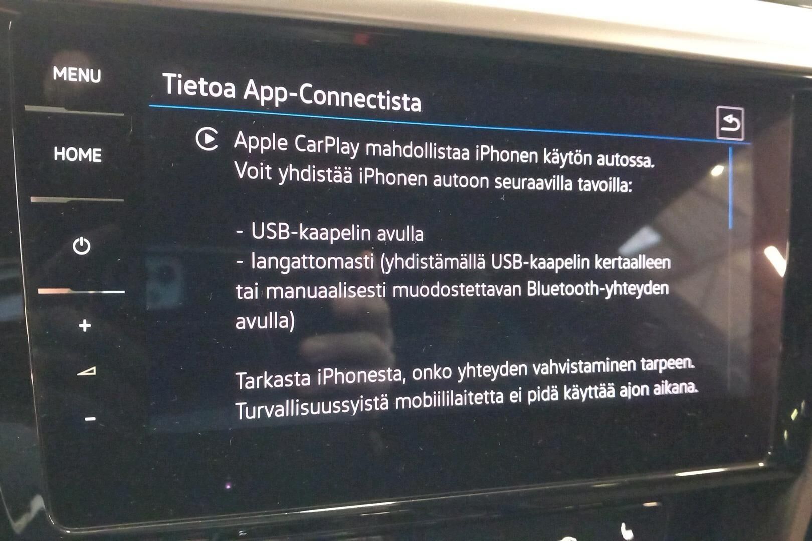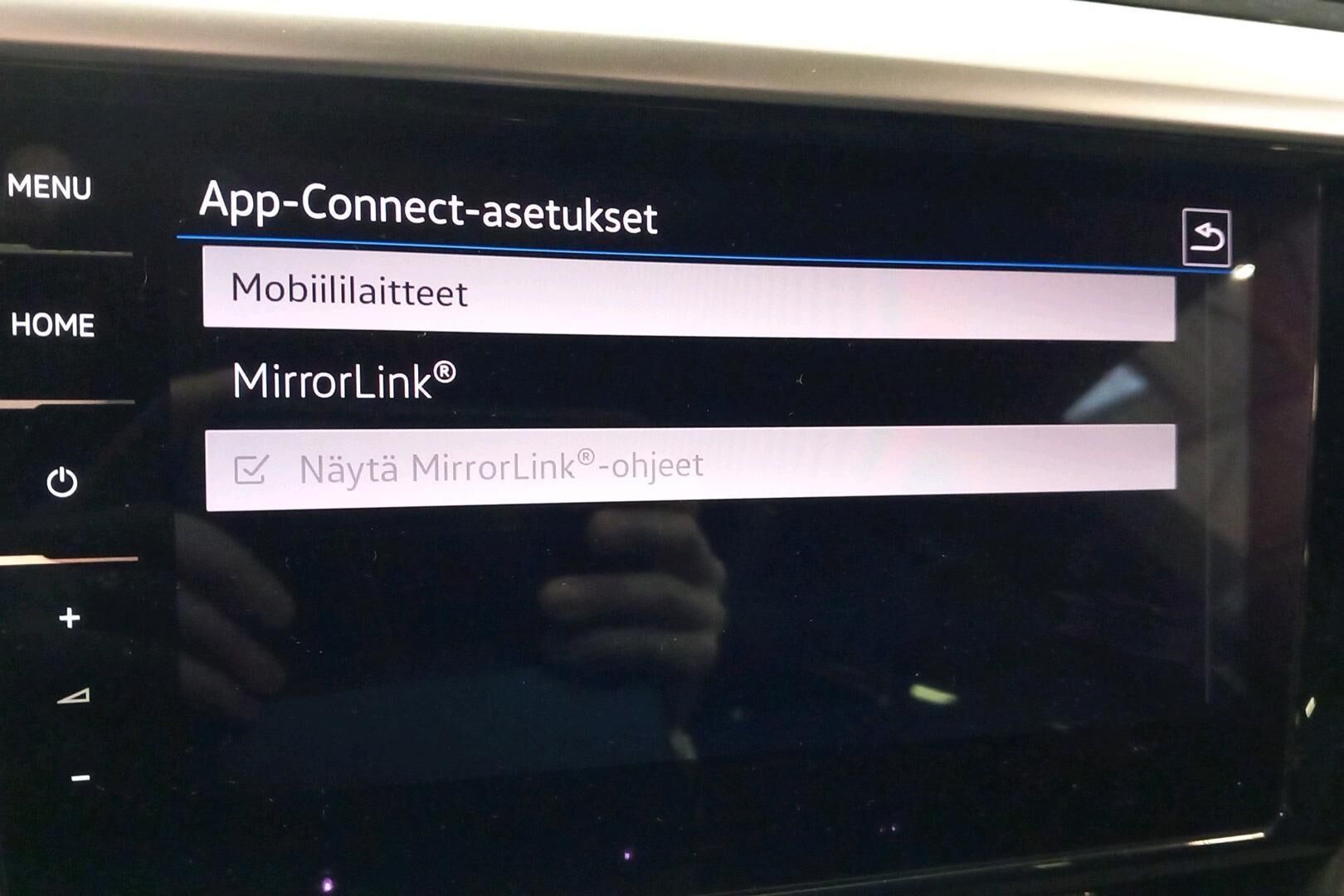 Langaton App-Connect älypuhelinliitäntä. Apple CarPlay ja Android Auto laitteiden käyttö radion näytöltä.