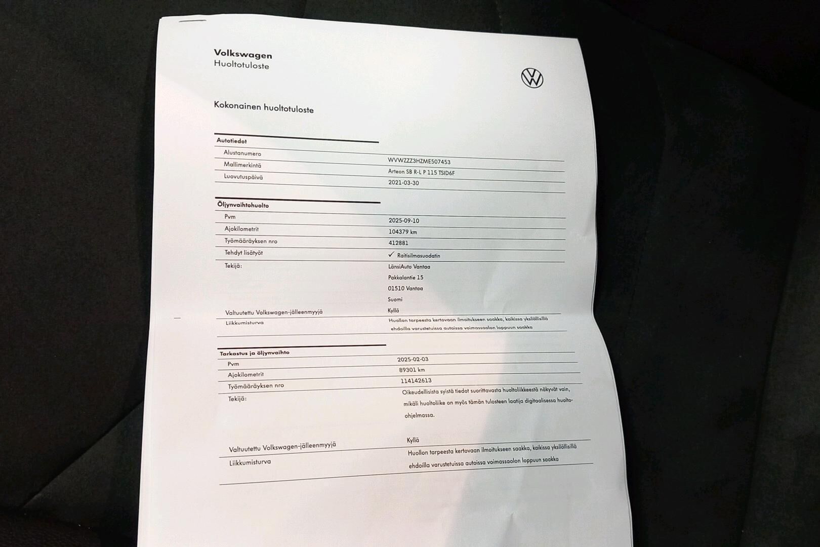 Viimeisin huolto tehty 09/2025 , 104 tkm