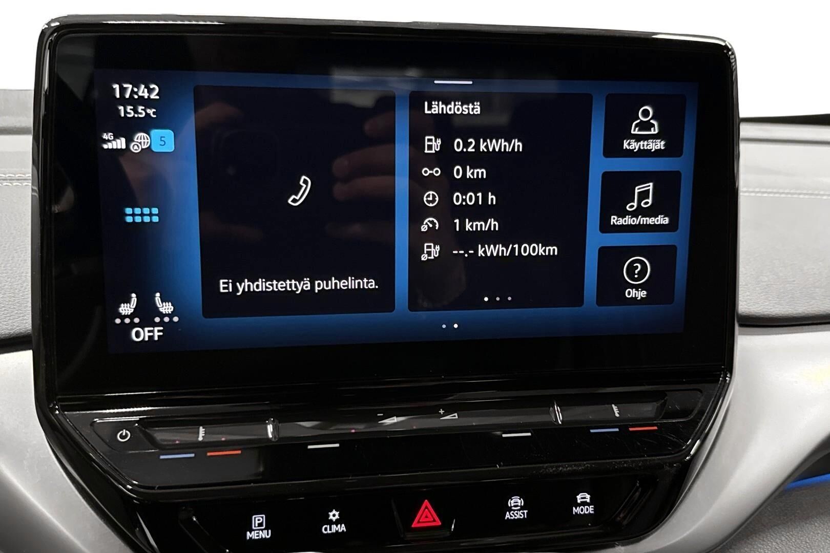 Tämä auto on täyssähköauto (BEV). Ilmoituksen kulutustiedot, latausajat sekä sähköinen toimintamatka ovat valmistajan ilmoittamia. Todellinen kulutus, latausaika ja toimintamatka saattavat poiketa ilmoitetusta johtuen auton iästä, ulkoisista tekijöistä kuten säätilasta ja käytettävästä latauslaitteesta sekä käyttäjän ajotavasta.