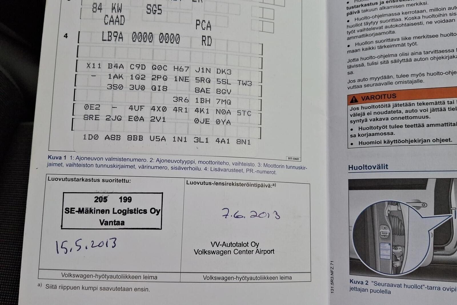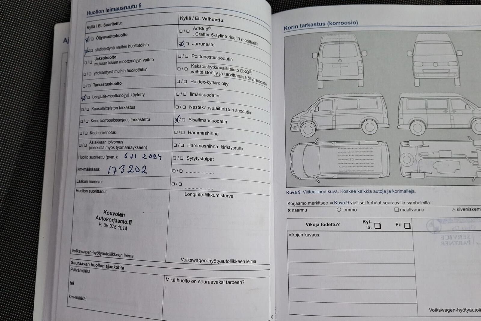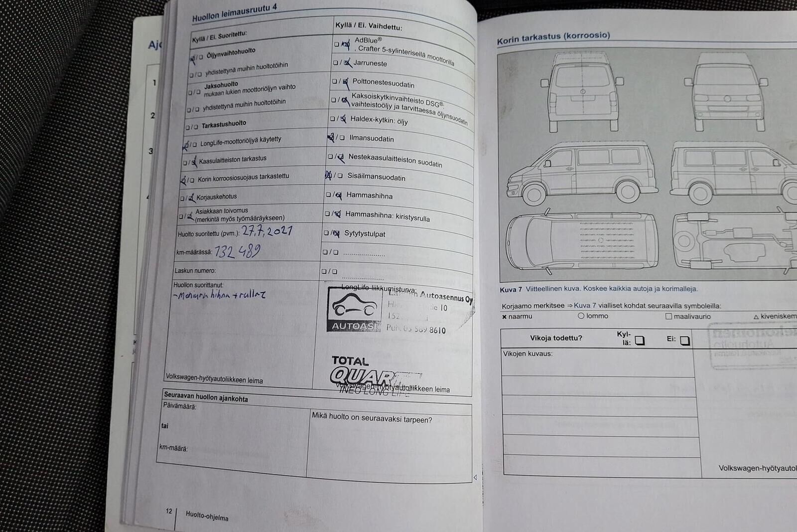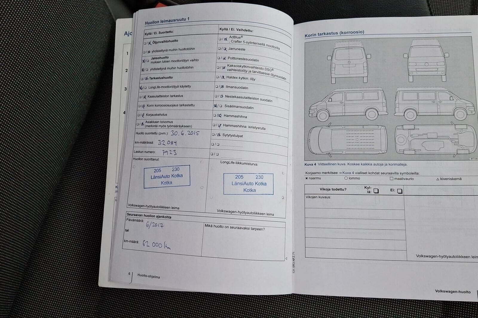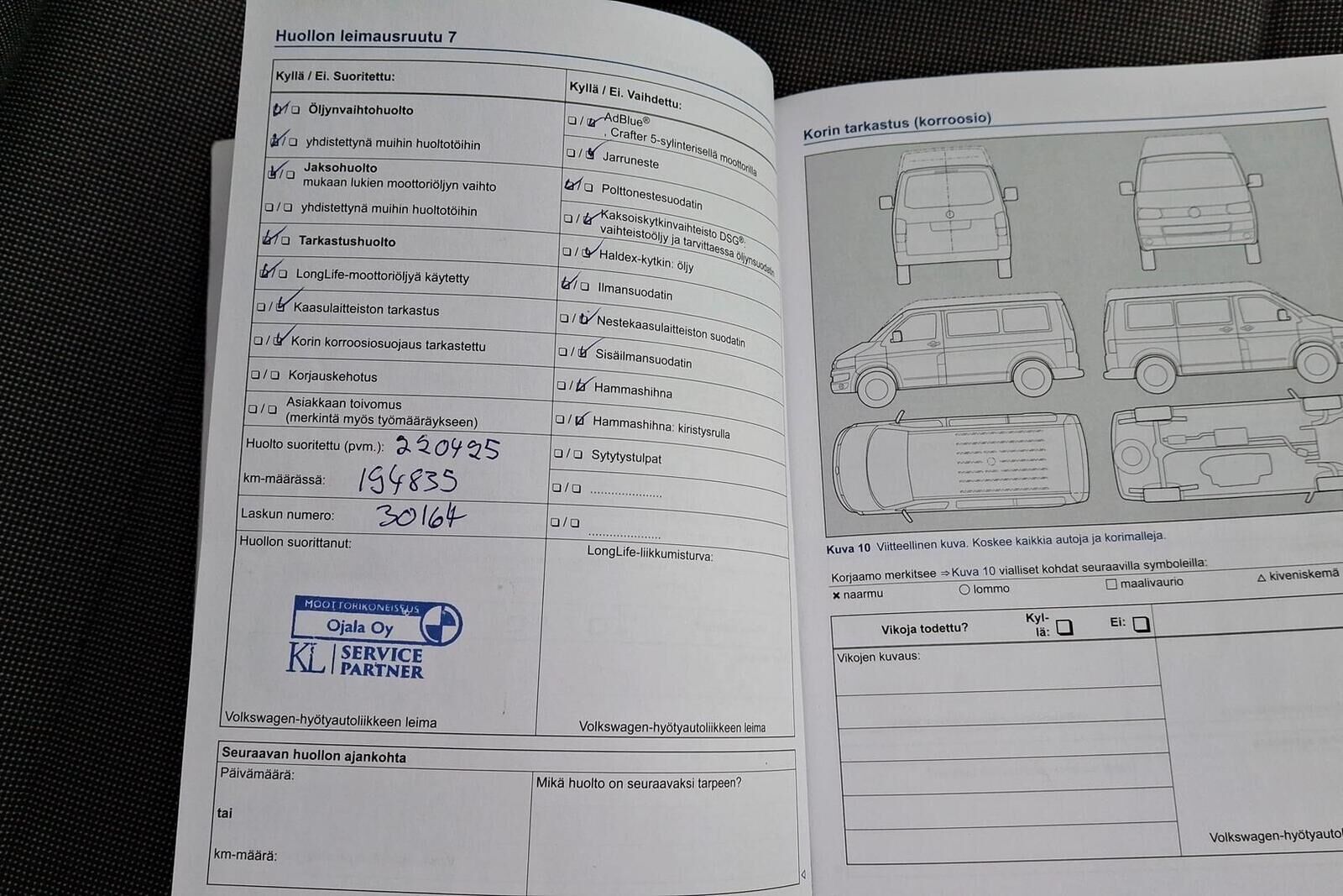 Viimeisin huolto tehty 195 tkm kohdalla 04/25